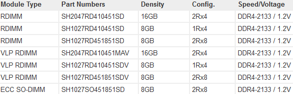 Currently, Smart Modular's lineup of available DDR4-2133 1.2V modules includes VLP (very low profile) and standard height RDIMMs up to 16GB, and ECC SO-DIMMs up to 8GB. The new DDR4 288-pin DIMMs feature all the advantages the DDR4 technology brings, such as improved power efficiency, higher performance, enhanced system reliability and other. Exact specifications of the DDR4 memory solutions from Smart Modular look as follows: