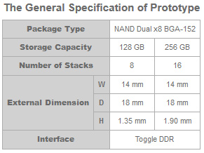 Toshiba Corp. on Thursday introduced the world’s first NAND flash memory packages, which stack eight or 16 dies of NAND flash memory devices and feature 128GB or 256GB capacities. The NAND flash memory chips are designed for various applications that require high density of NAND flash storage, including mobile products and enterprise-class solid-state drives with extreme capacities.