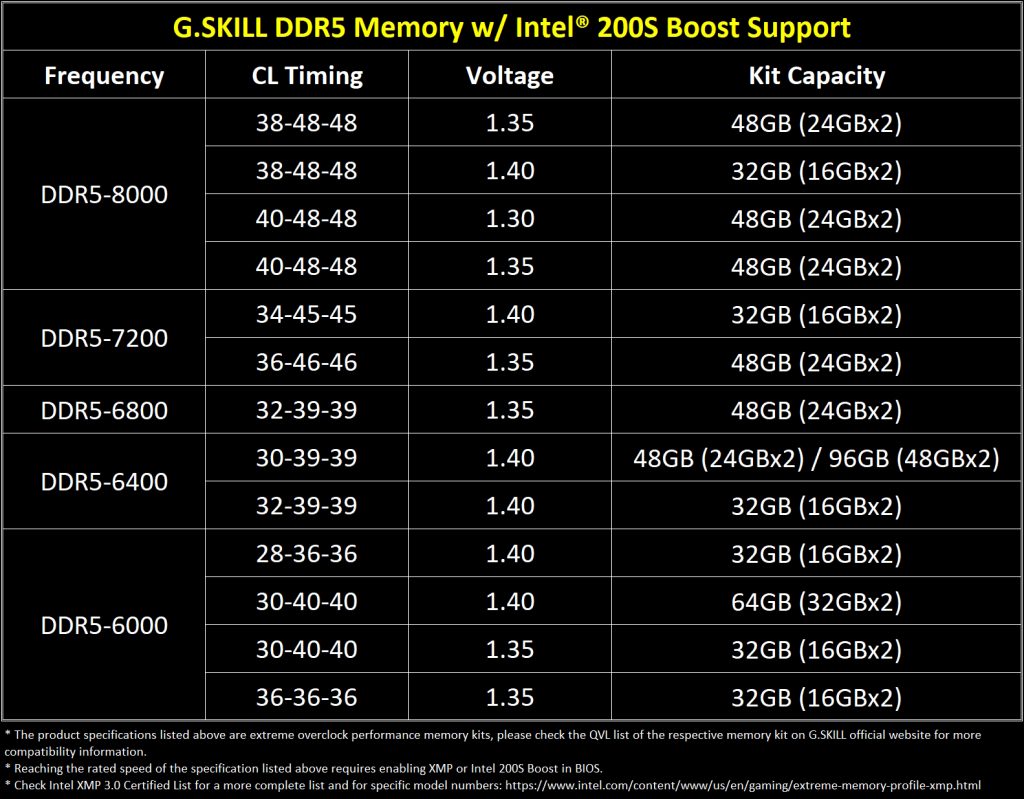 As the excitement builds around Intel's recently unveiled ‘200S Boost' performance profile, G.Skill is stepping forward with their memory compatibility details. The company has announced that it has a comprehensive list of its DDR5 memory profiles ready and verified to work with Intel's new feature, ranging from DDR5-6000 up to DDR5-8000 speeds.