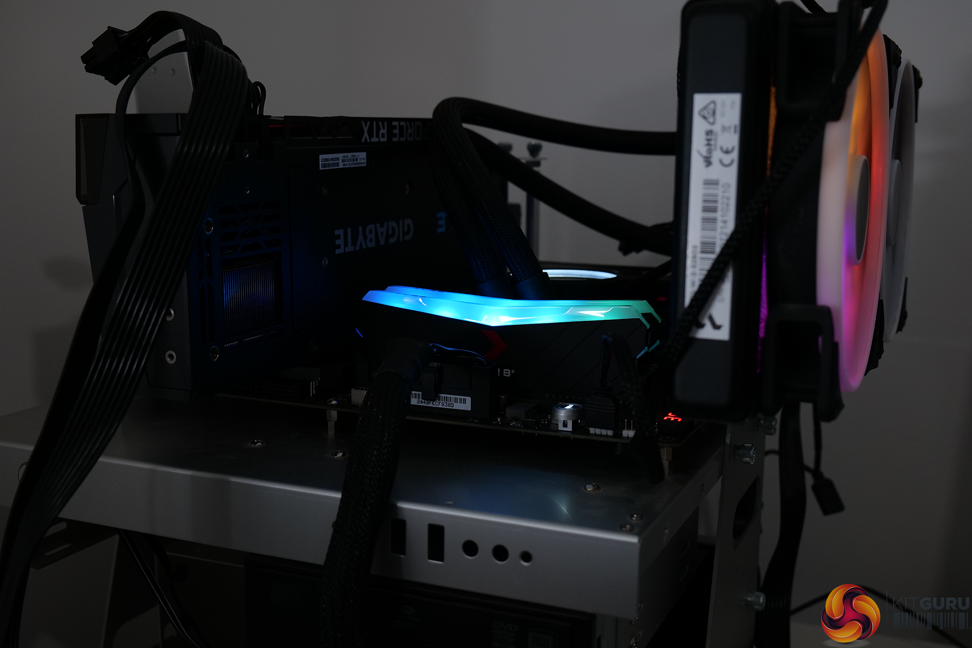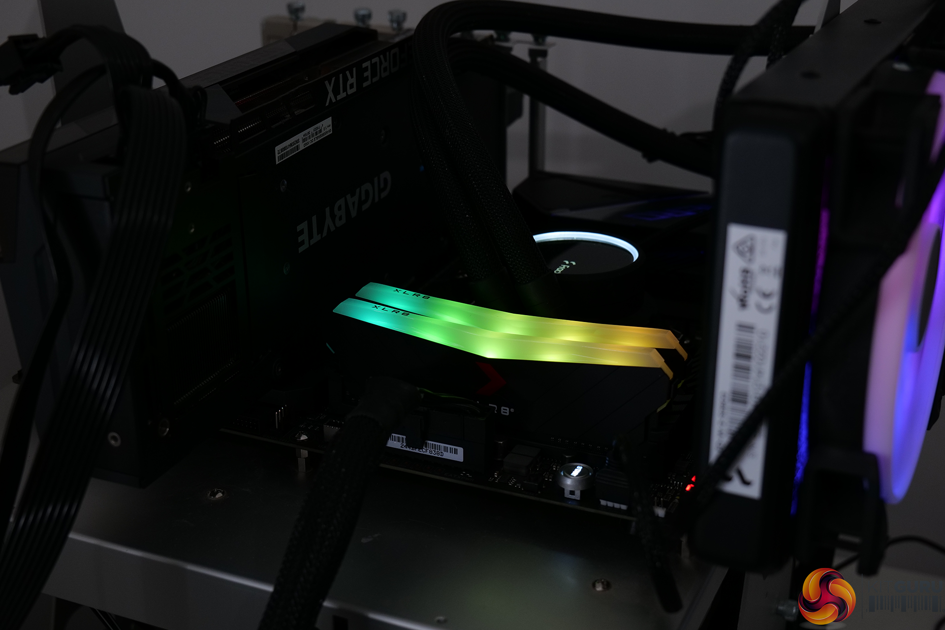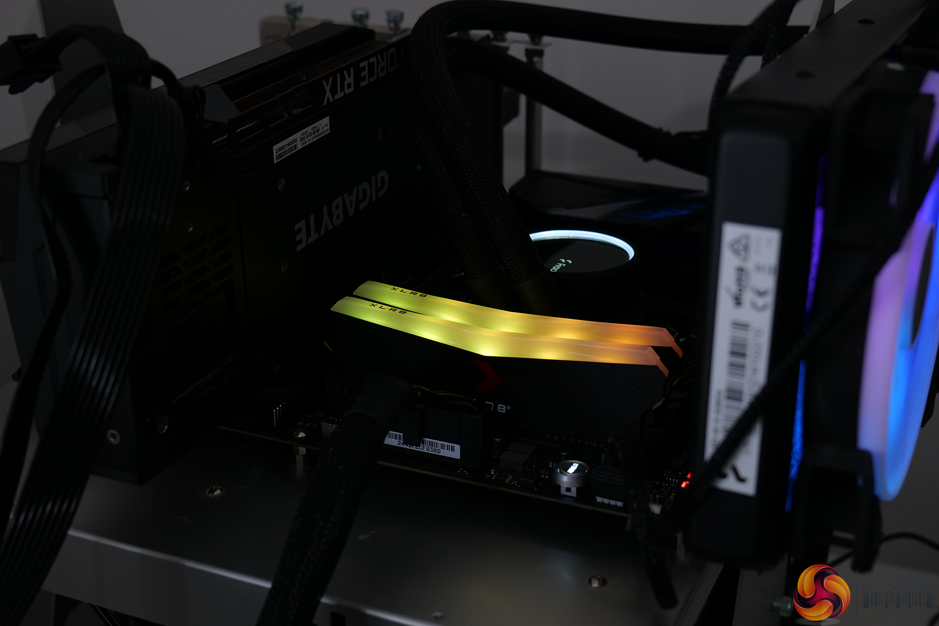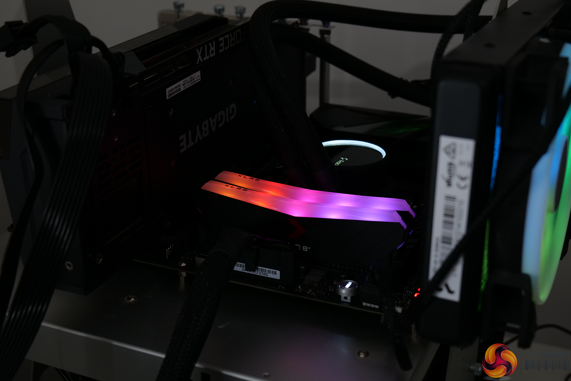At around 48mm maximum height, albeit in a slanting design, PNY’s height is not particularly accommodating for users with air CPU coolers. In fact, the slanting design means that the tallest parts of the modules are at each outer edge. Disappointingly, this brings roof-mounted AIO and chassis fan interference into the equation.
