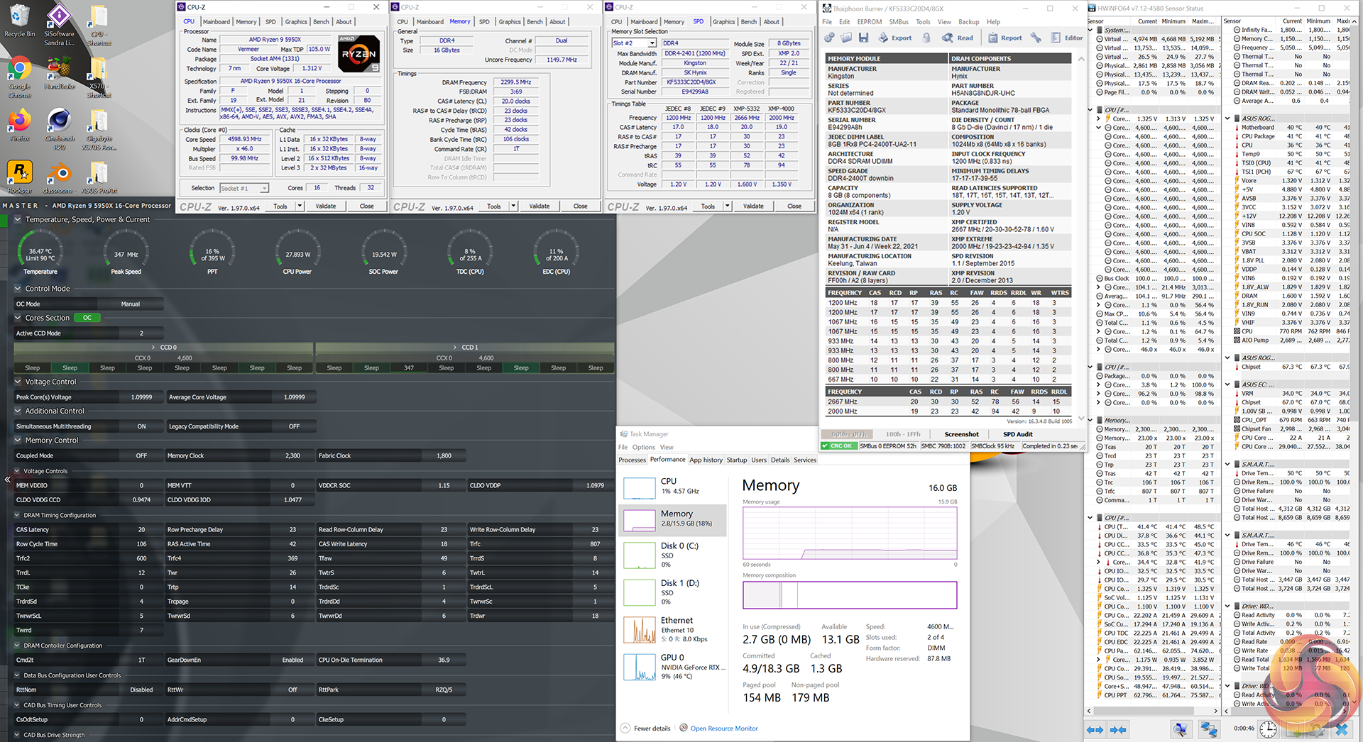 - Processor: AMD Ryzen 9 5950X overclocked to 4.6GHz all core.