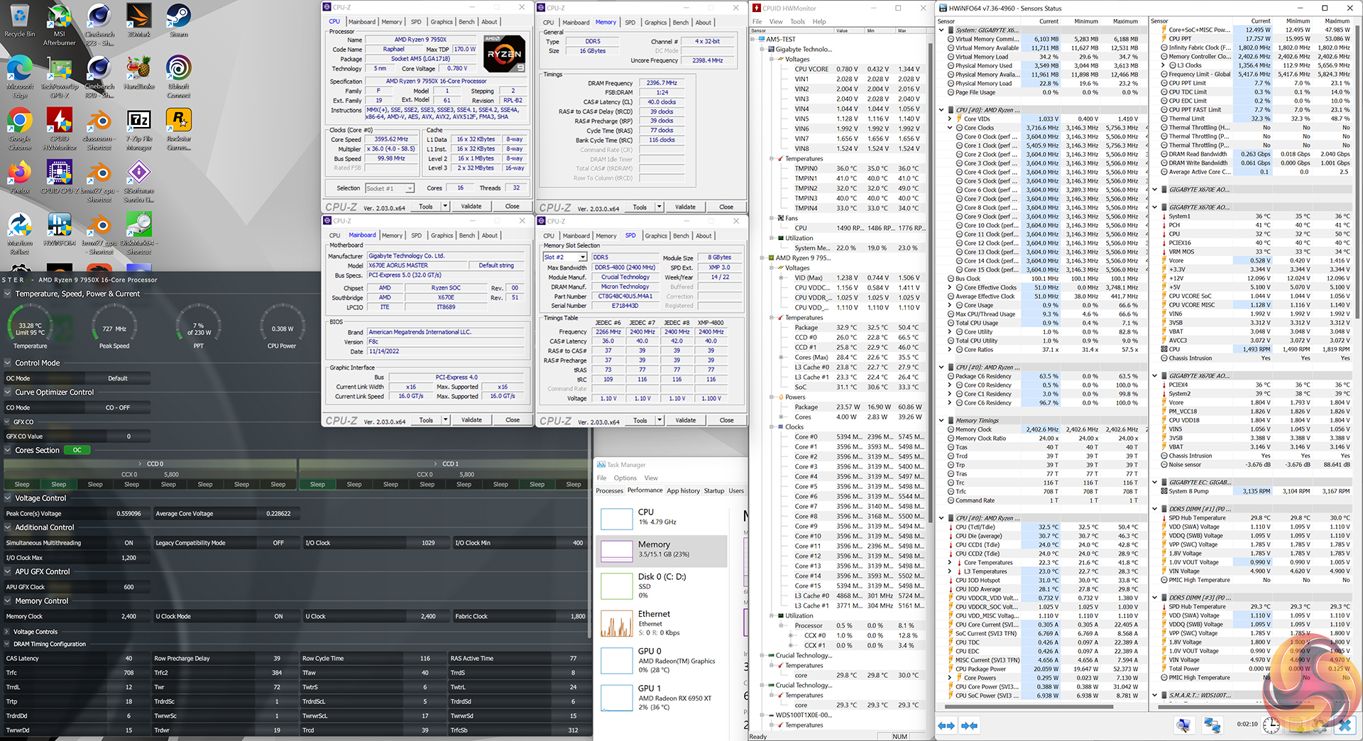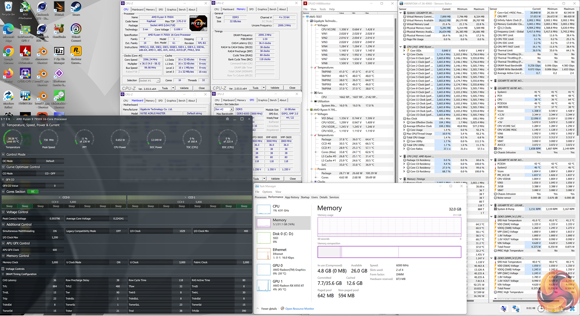- Processor: AMD Ryzen 9 7950X at default XMP/EXPO operations