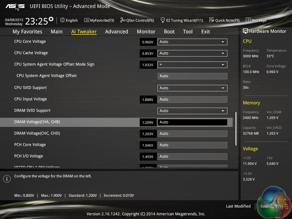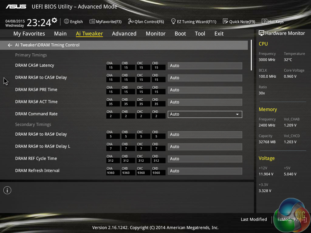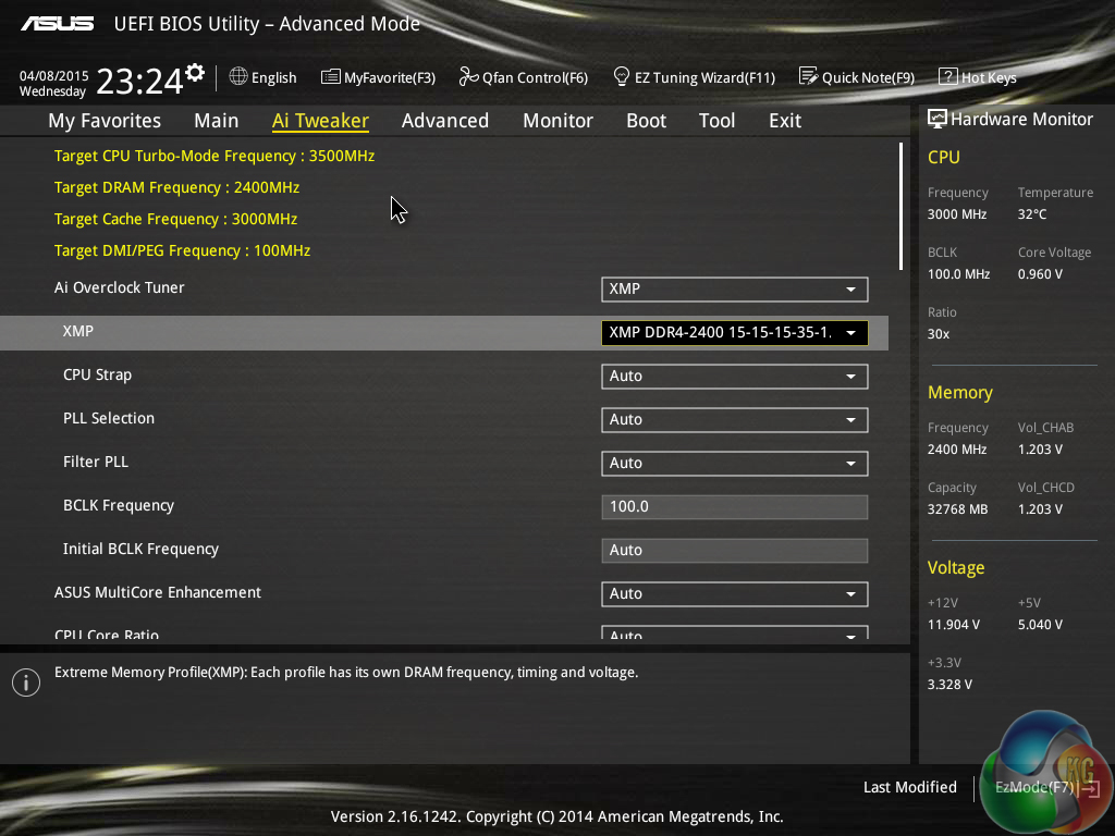 Getting the G.Skill Ripjaws4 kit to run at 2400MHz in the Asus motherboard’s UEFI was as simple as selecting the XMP configuration.
