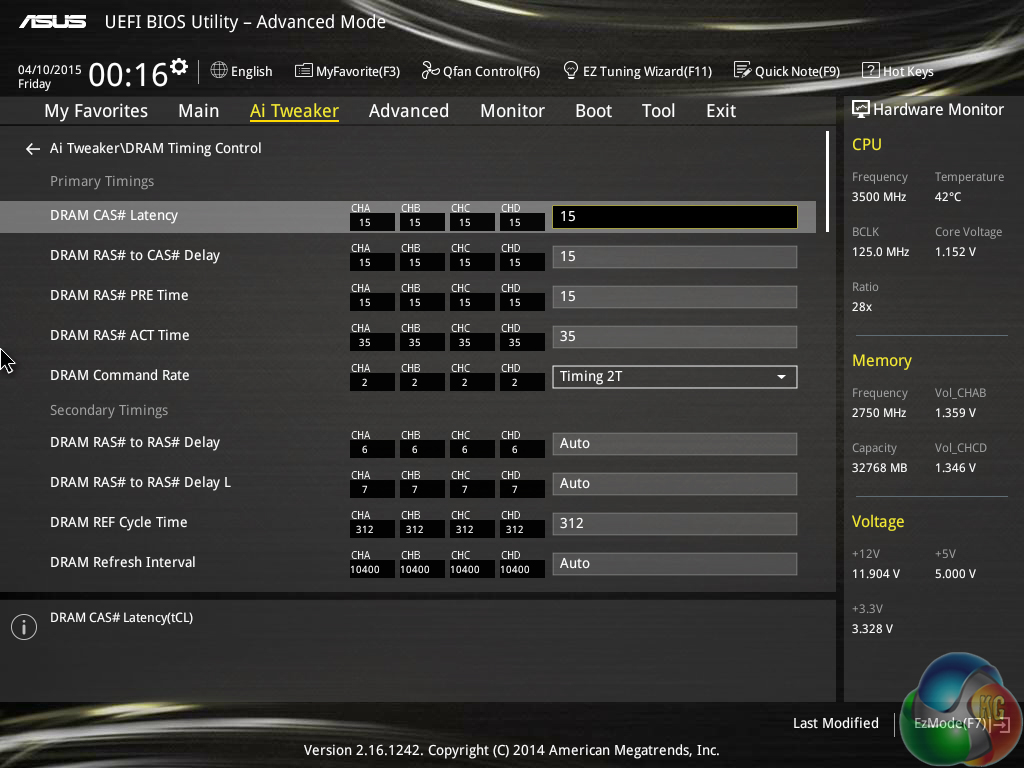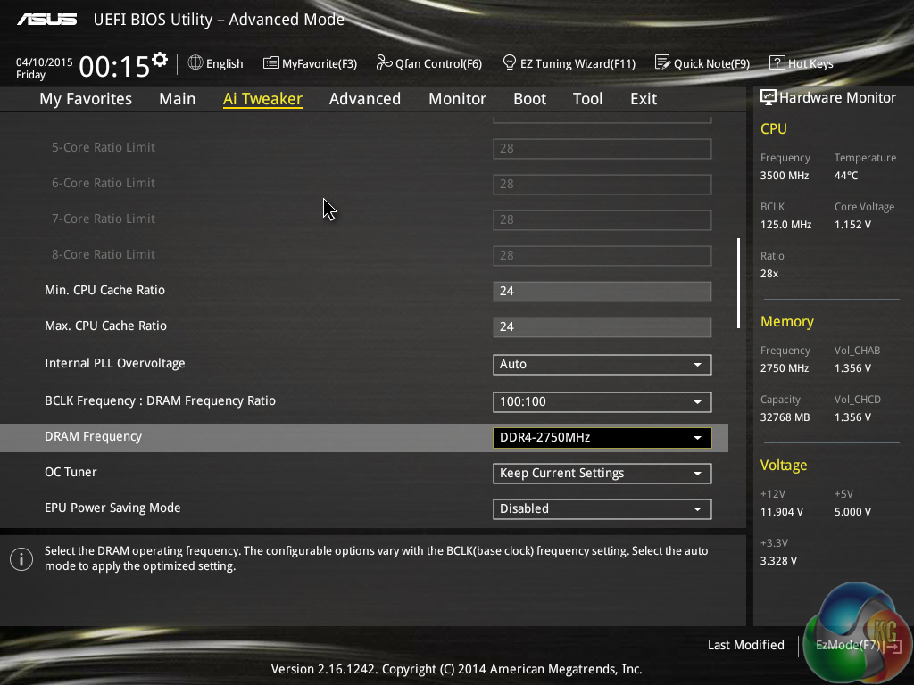 We ran tests using the 2750MHz memory frequency, but found it to offer worse performance due to the added latency of using the 125MHz BCLK strap. Instead we opted for the highest frequency that we could reach using the 100MHz BCLK strap.