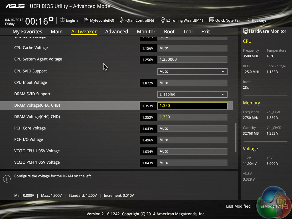 We managed to achieve a stable memory overclock of 2750MHz. This consisted of a 125MHz base clock, 100:100 BCLK:DRAM frequency ratio, and a 22x memory divider.