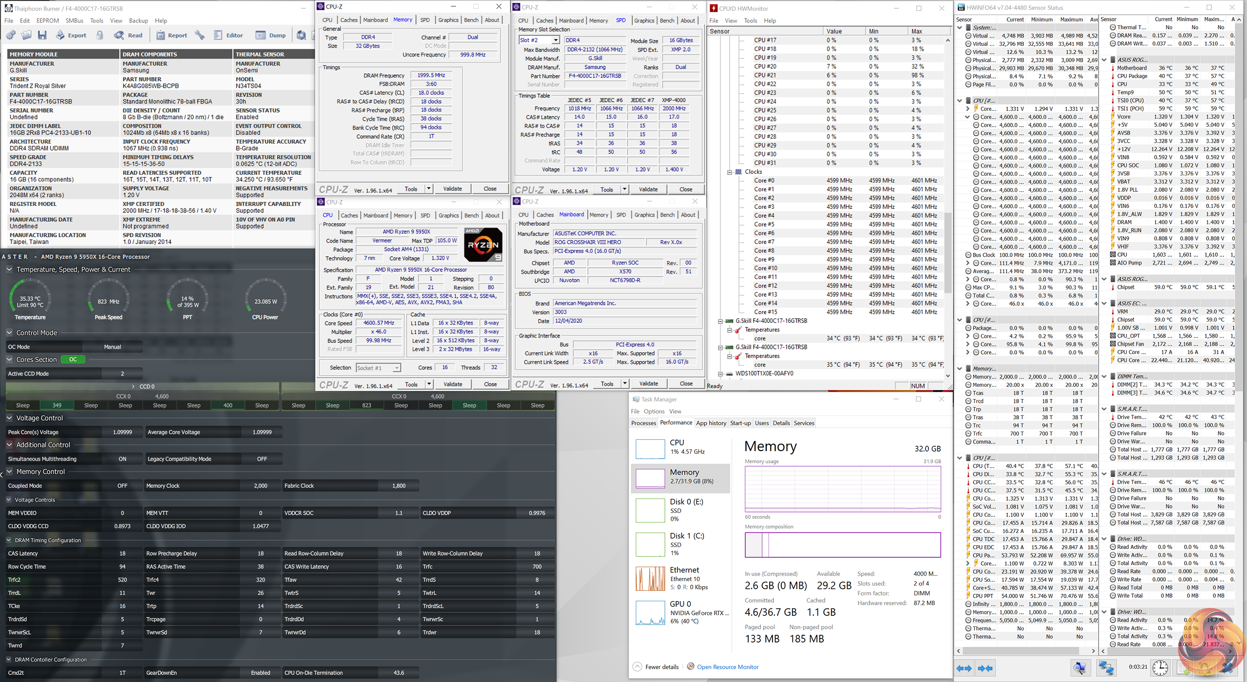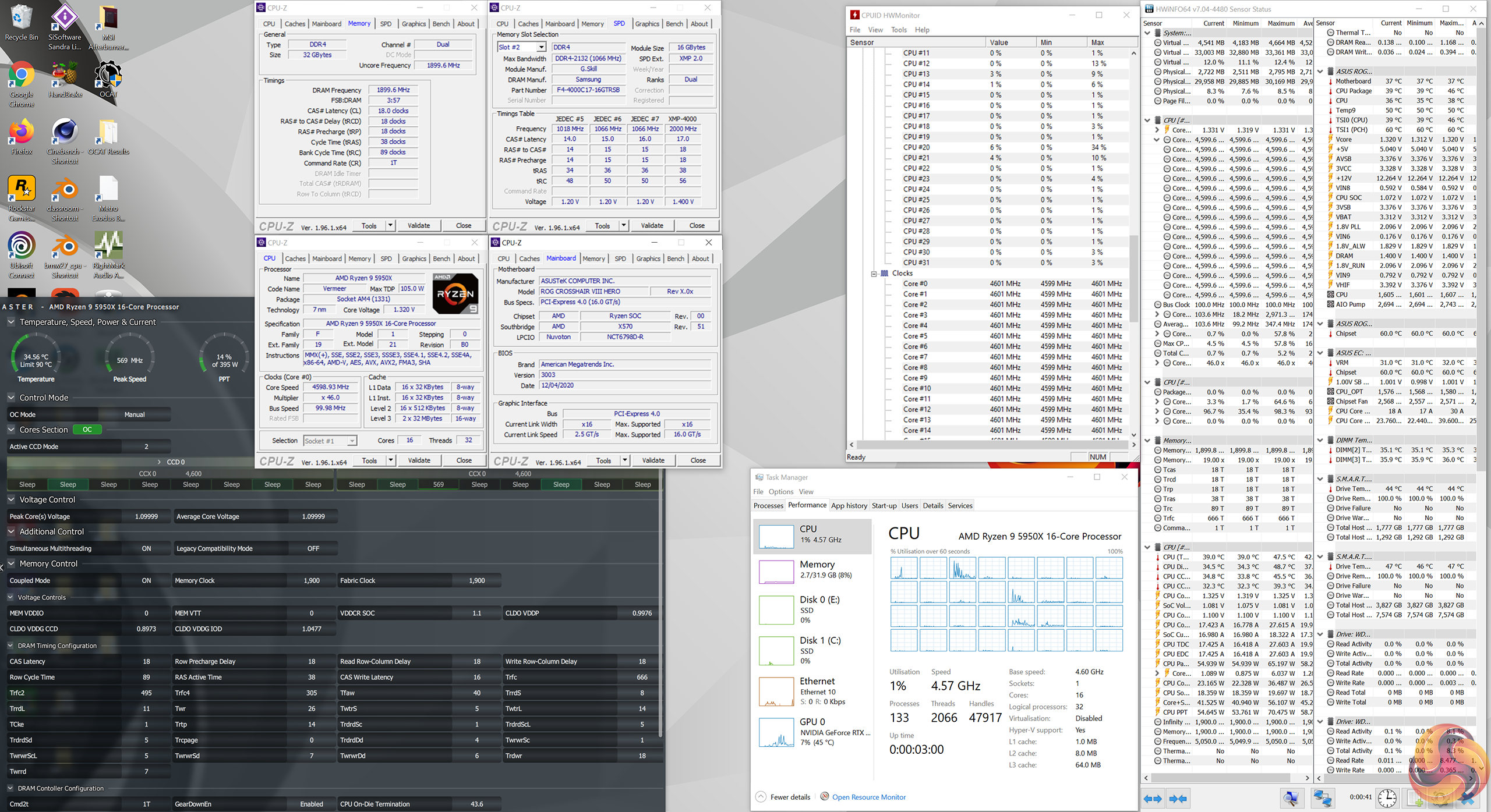 - Processor: AMD Ryzen 9 5950X overclocked to 4.6GHz all core.
