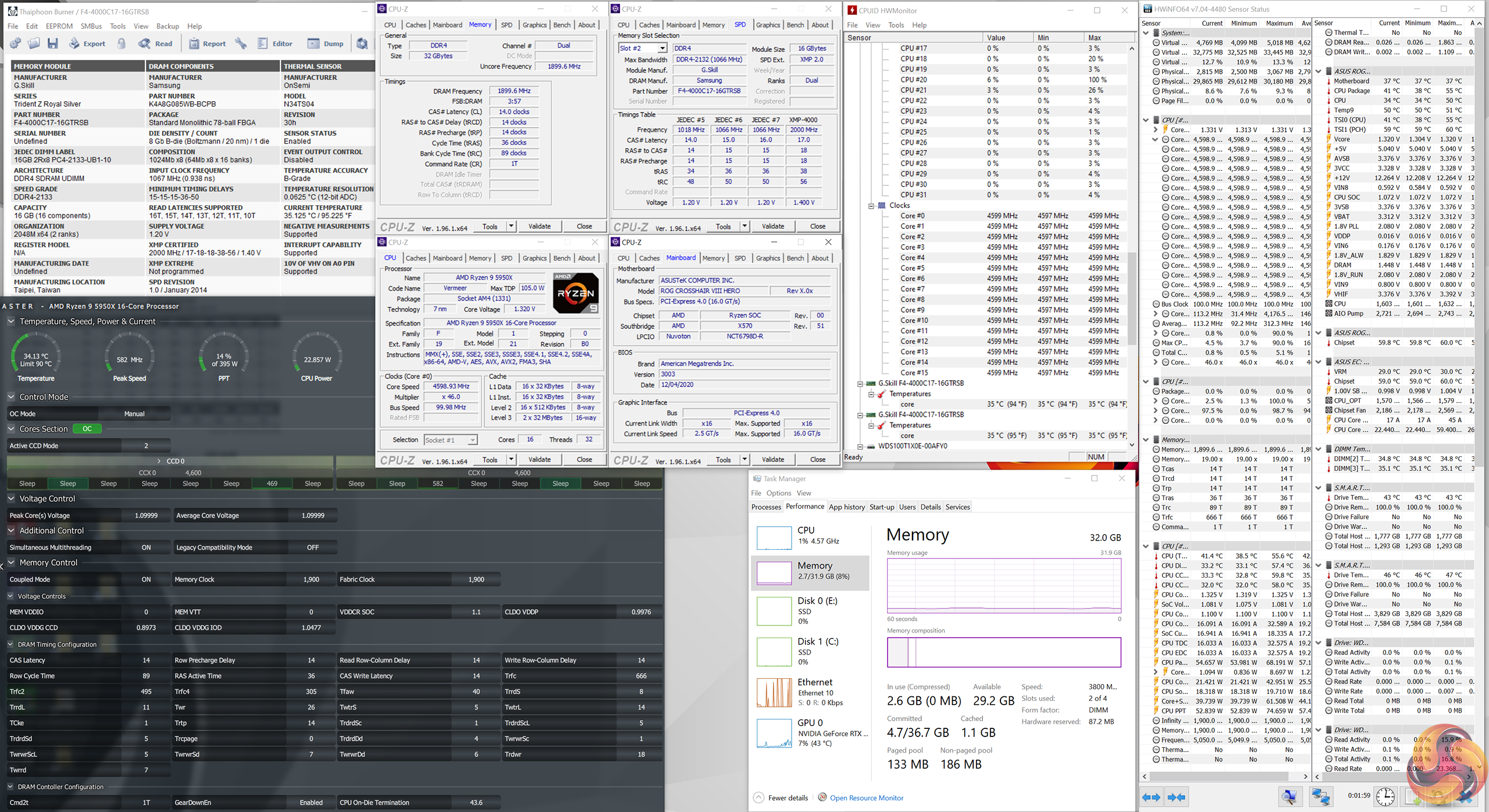 3800MHz 14-14-14-36 at 1.45V is a quick-and-dirty overclock that we were happy with. Better yet, it allowed us to maintain the preferential 1:1 1900MHz IF and memory controller clock frequency.