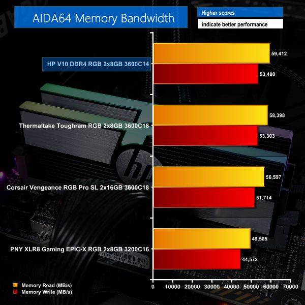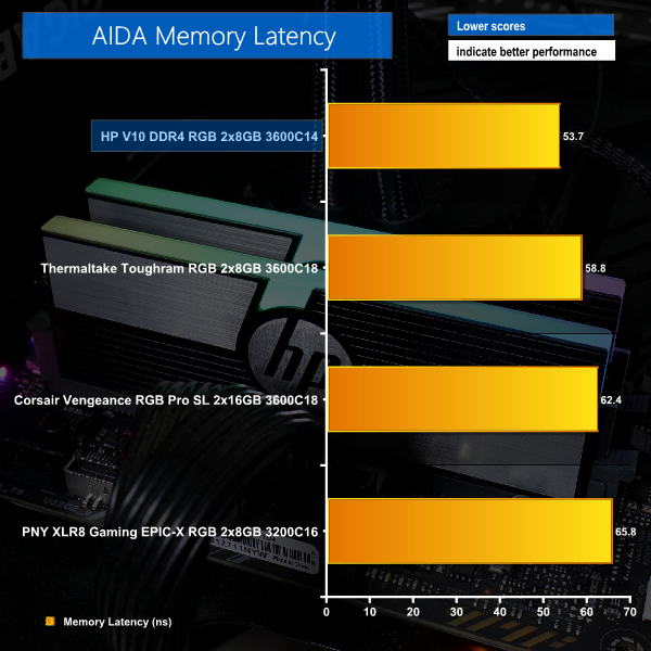 Latency performance is particularly strong for HP. This is thanks to the blend of 3.6GHz RAM frequency alongside tight 14-15-15-35 timings.