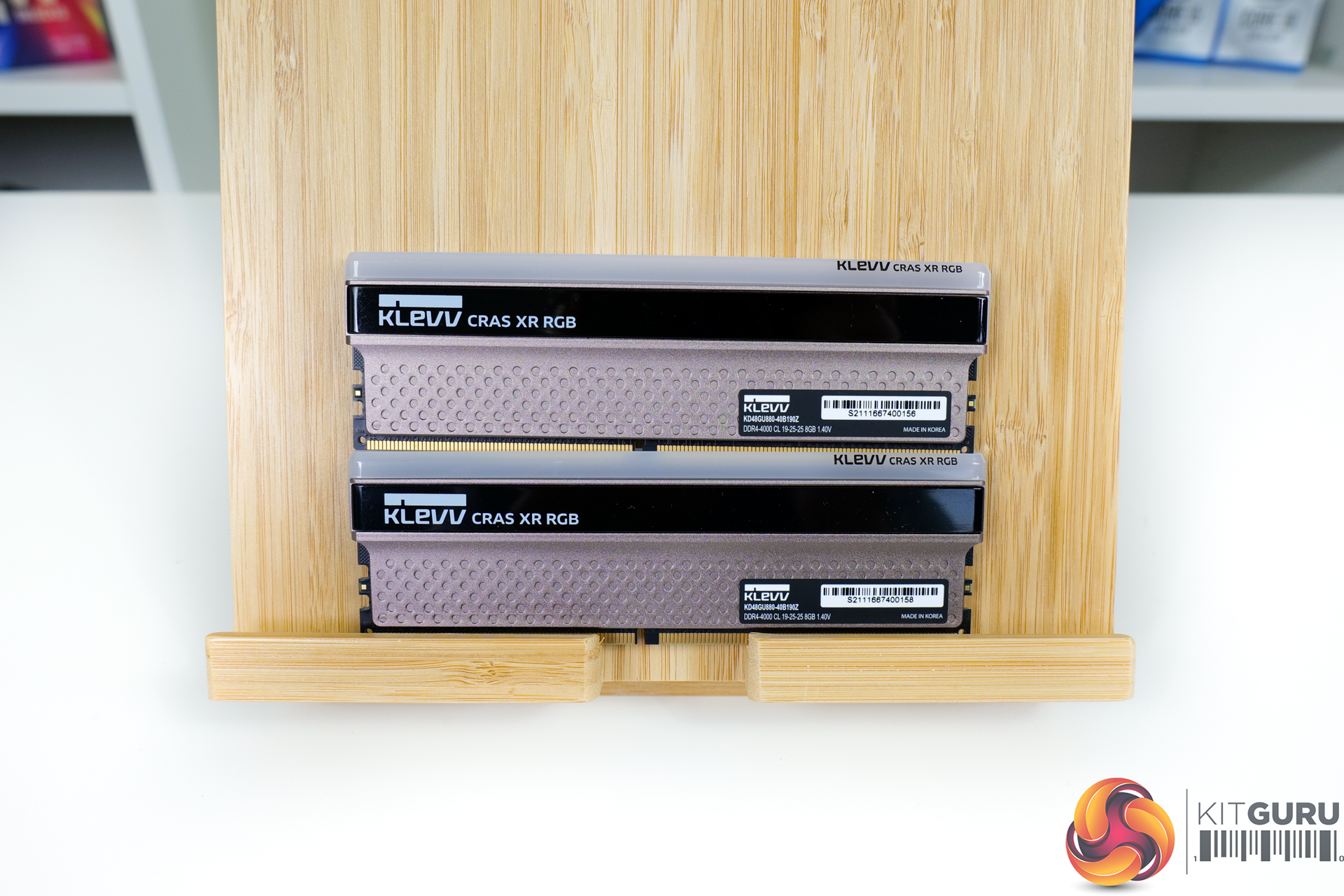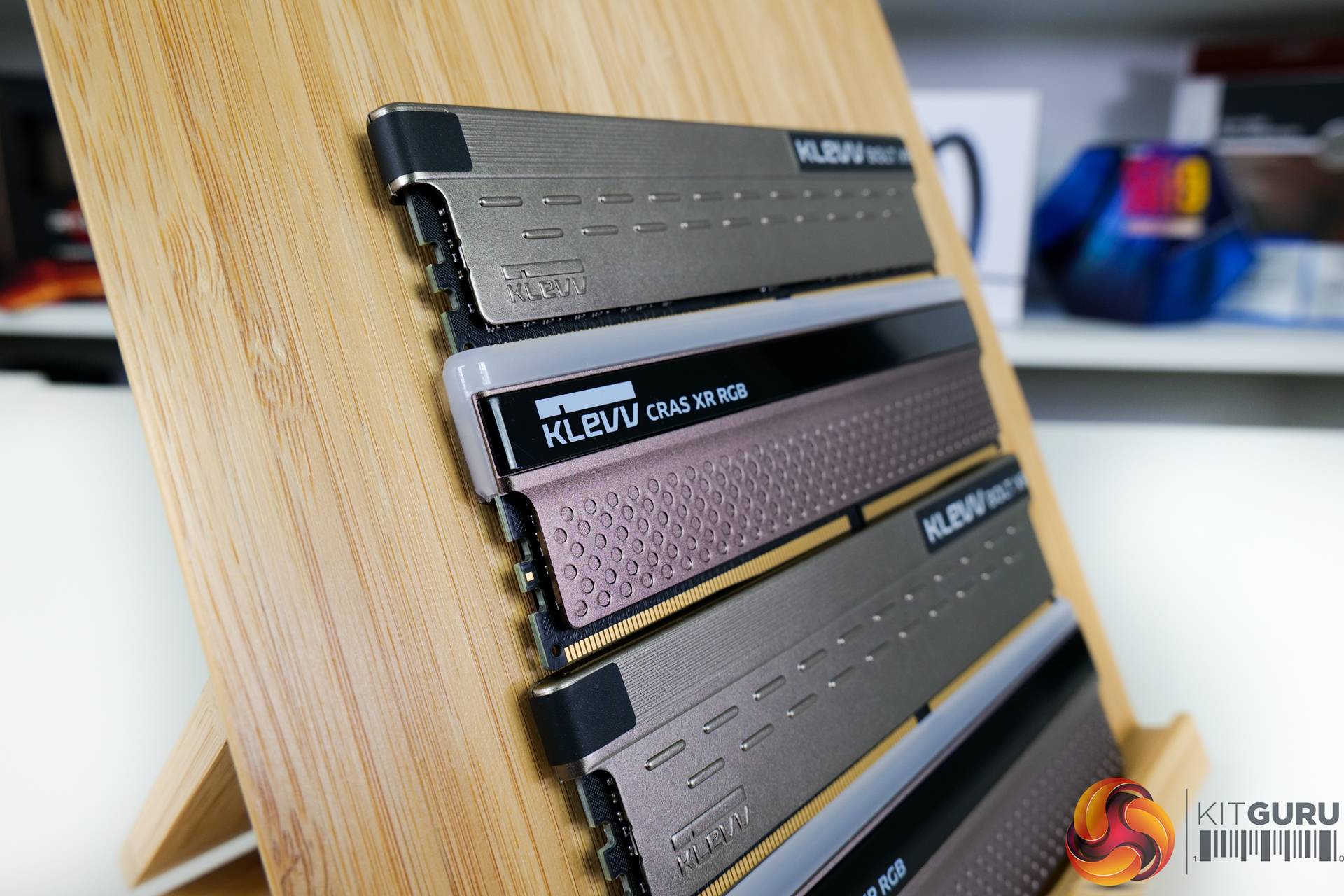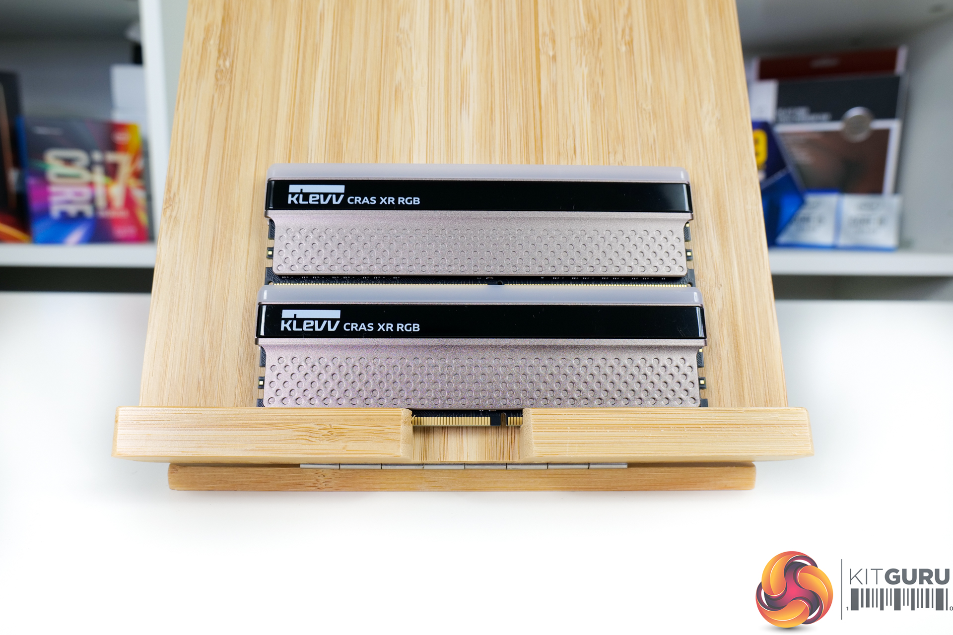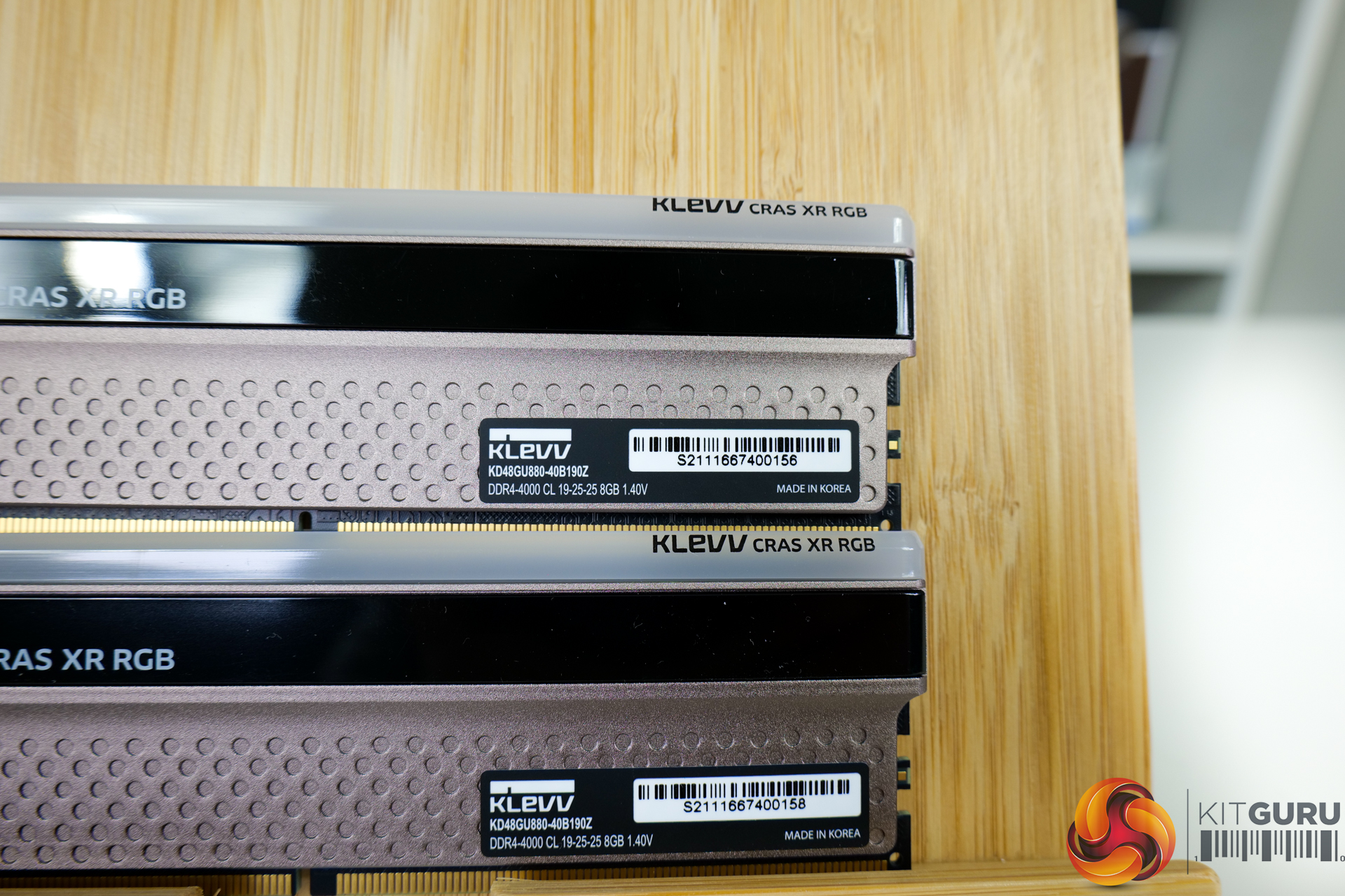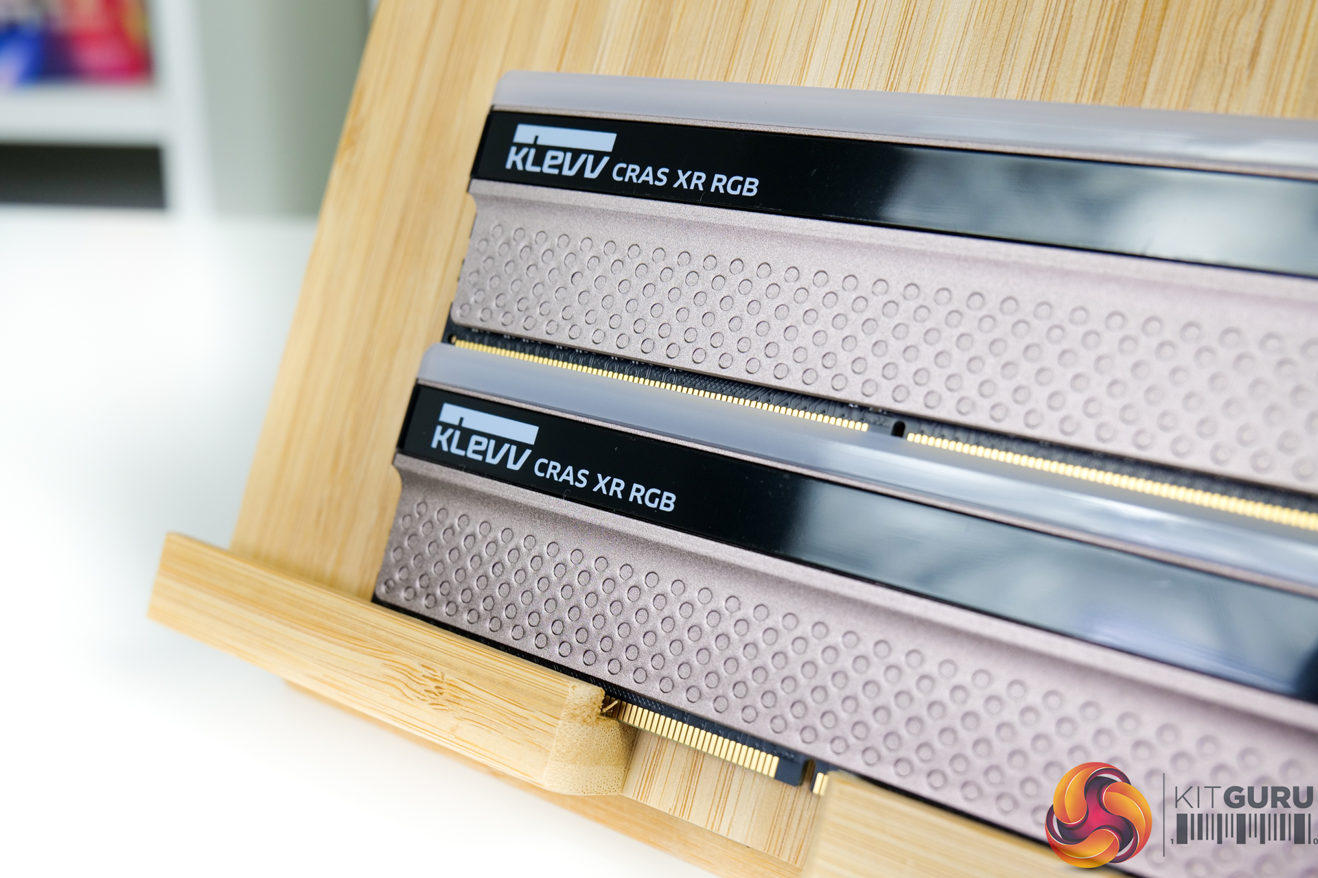 Now focusing on the Cras XR RGB modules, which of course run at the same settings, the key variation comes in the heatspreader – and therefore overall module – design. Klevv still uses an aluminium heatspreader, but this time the design is changed to a dotted style that I personally prefer over the Bolt XR’s notches.