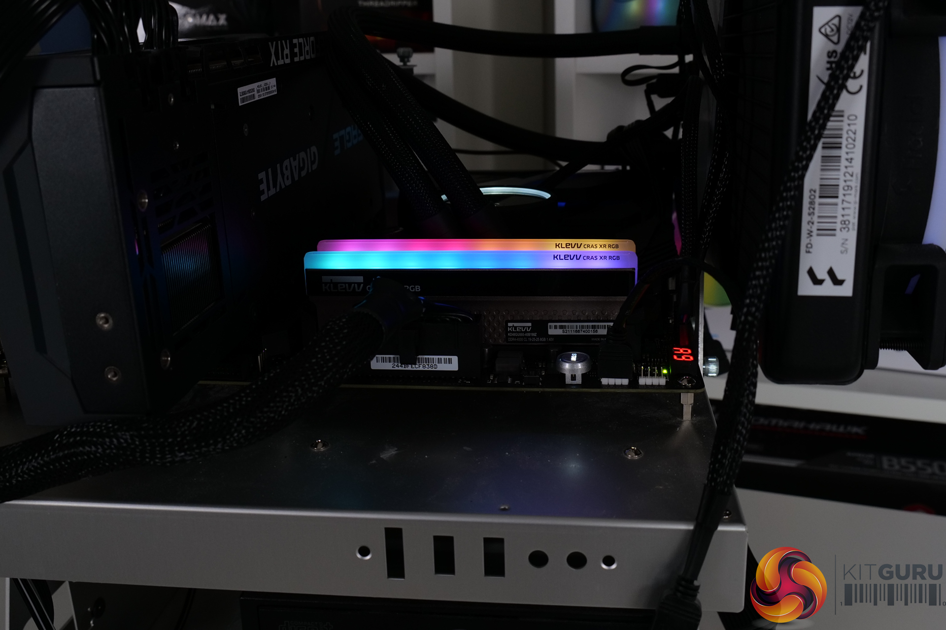 Versus Corsair Vengeance RGB Pro SL, the Klevv modules do not appear quite as bright and the smoothness is not quite as granular. However, the wrap-around style of the Klevv lightbar is beneficial for better blending of different colours either side of the centreline. That’s a comparison versus one of the market leaders, and Klevv gets close enough to Vengeance RGB Pro SL to keep me happy, especially with the 2mm smaller module height.