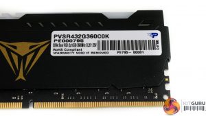 It is difficult to tell exactly how many RGB LEDs sit underneath the lightbar. And that is a particularly important point given the perceived smoothness of the emitted light. Similarities to the light diffuser strip on the Corsair Vengeance RGB Pro modules are evident, and that’s strong praise for Patriot.