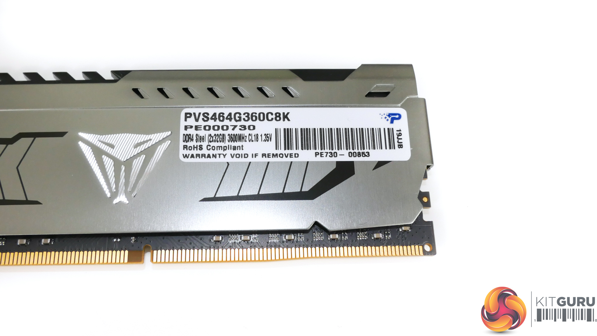 A variety of capacity and speed options are available throughout Patriot’s Viper Steel Series DDR4 line-up. We are examining the 2x32GB 3600MHz 18-22-22-42 set that operates at 1.35V and is therefore suitable for both AMD and Intel platforms.