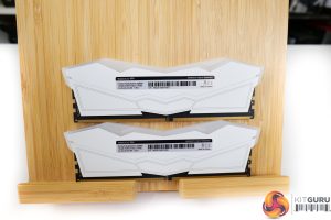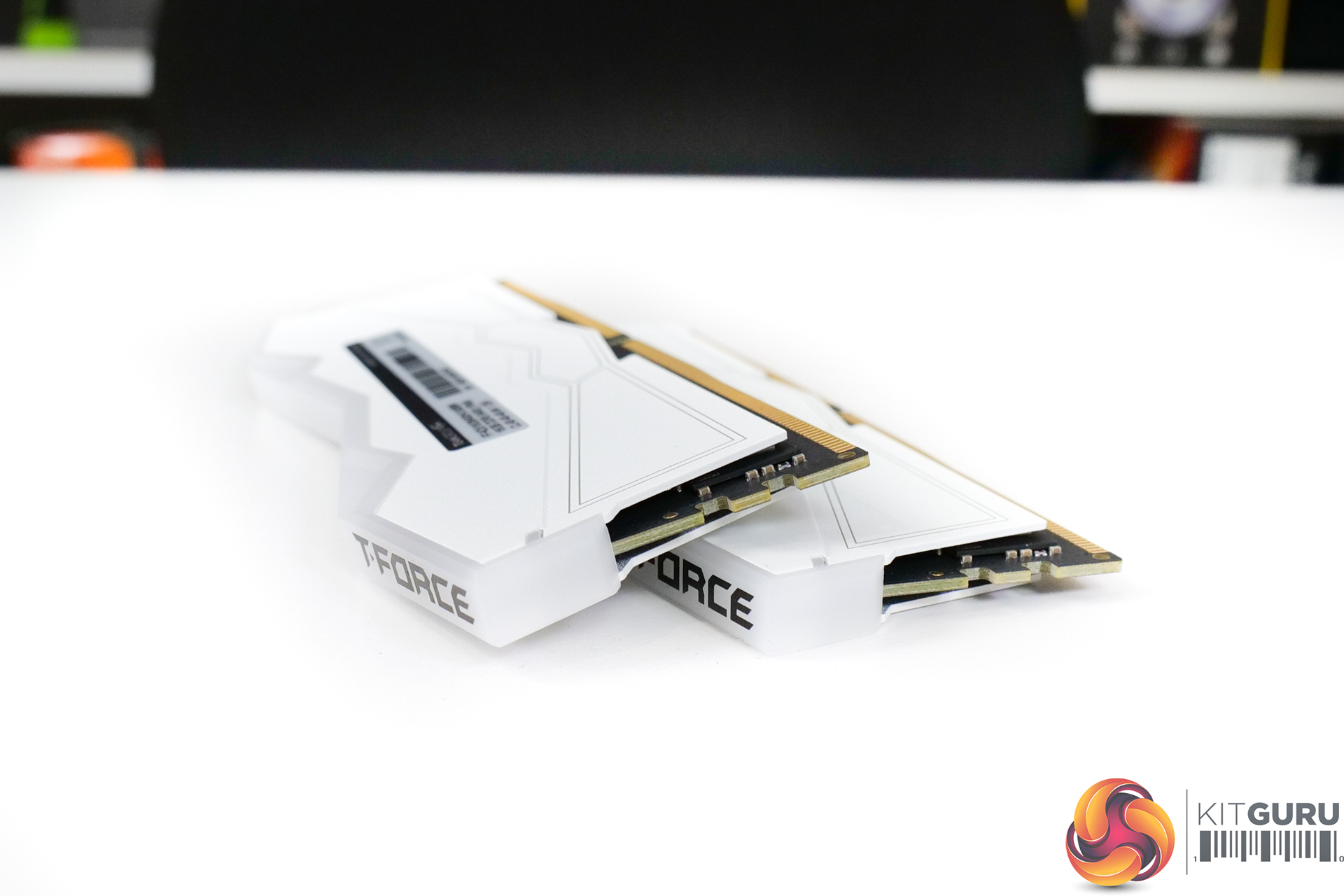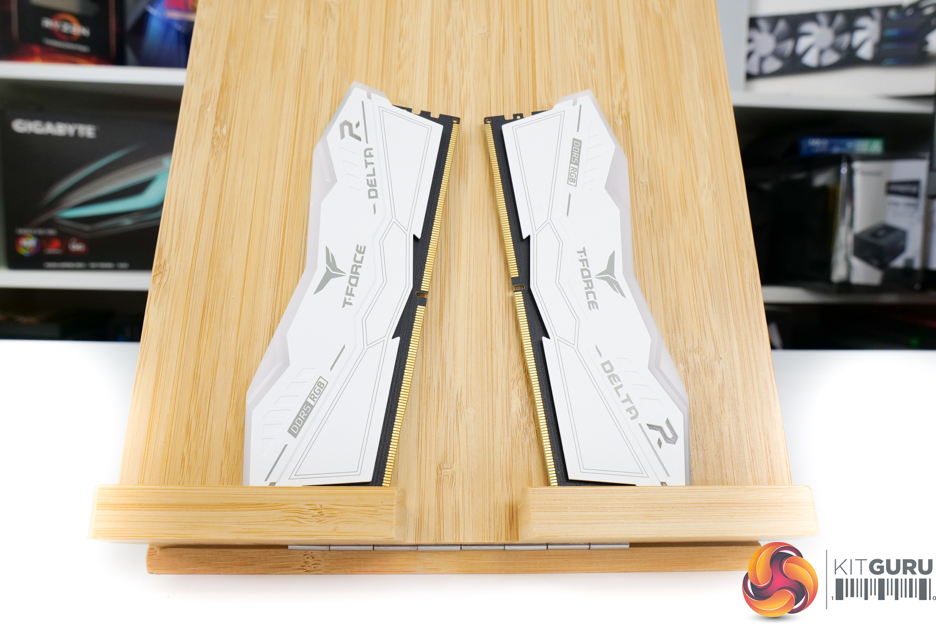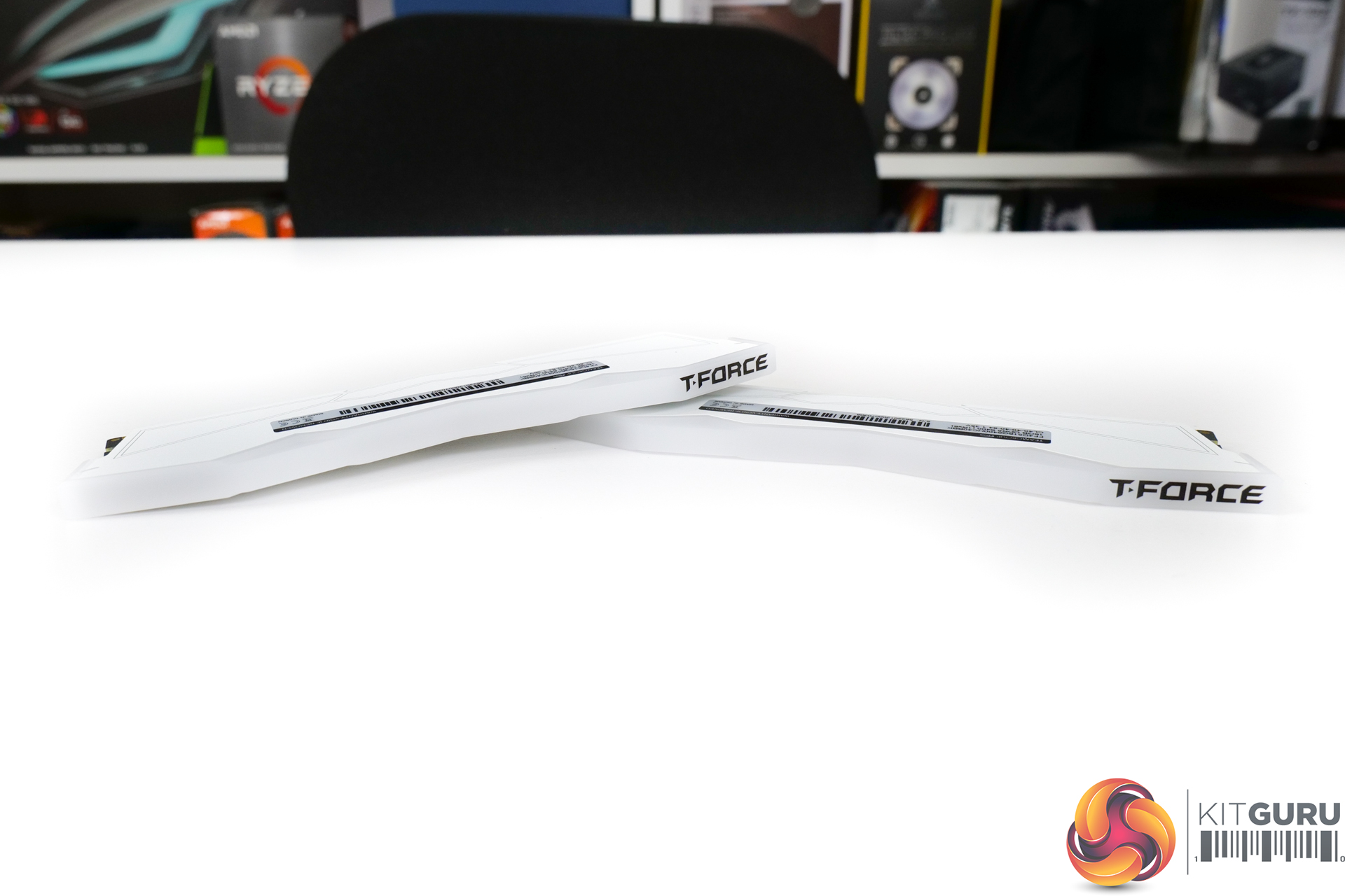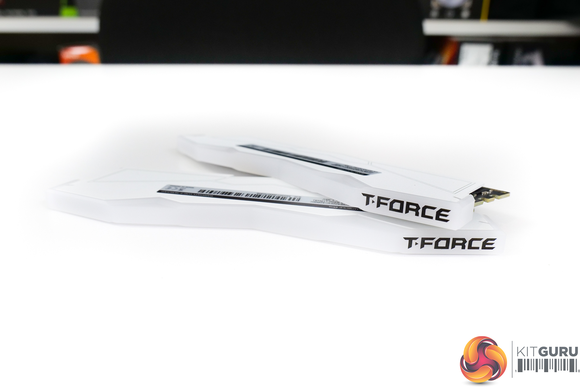 In terms of styling, TeamGroup has gone for a clean, angular aesthetic. We get an angled heatspreader that can be coloured black or white – white in our case. There’s plenty of writing on the side of the modules highlighting the product name, and the jet-black PCB that is barely visible underneath offers an appealing contrast.