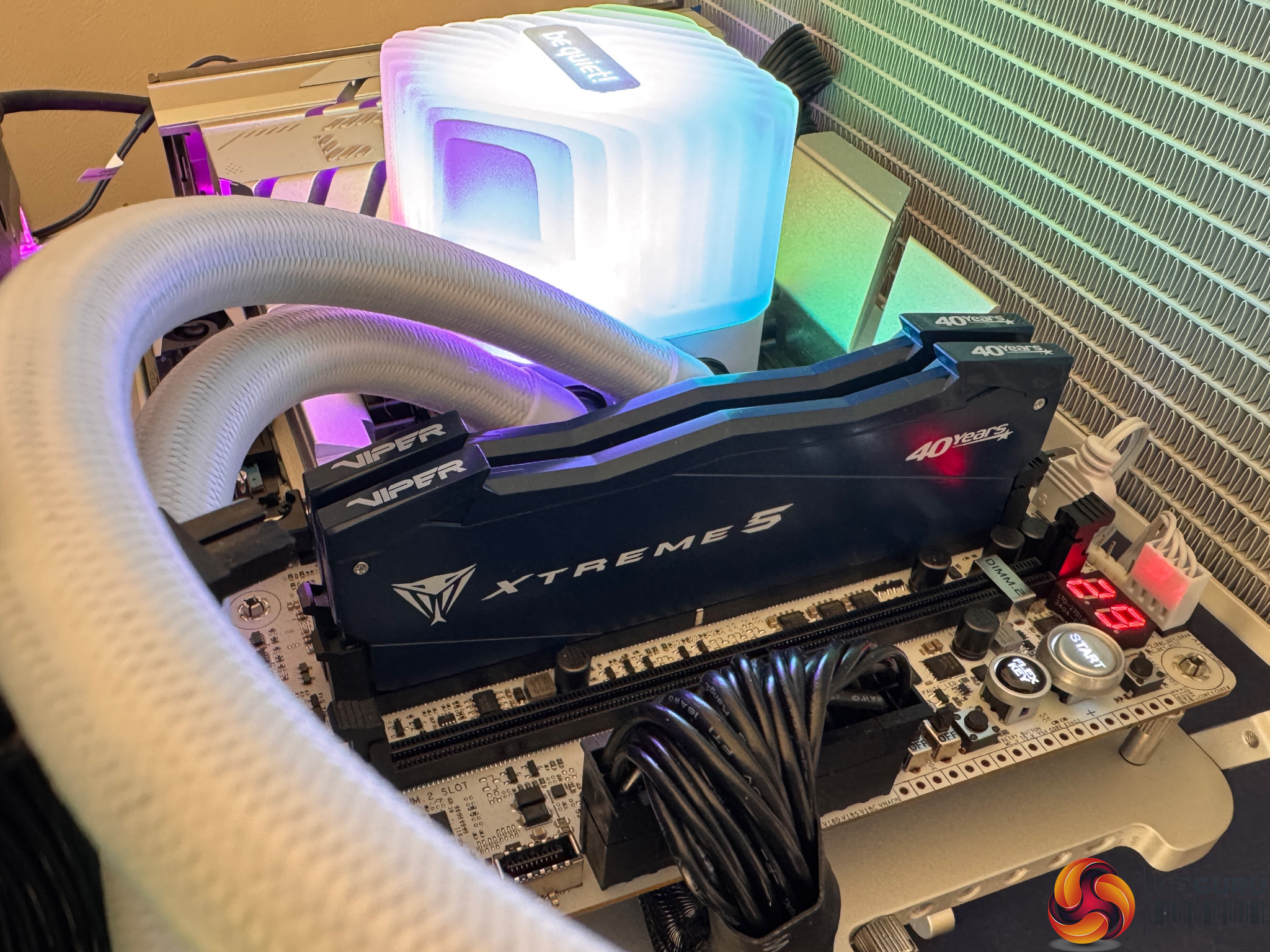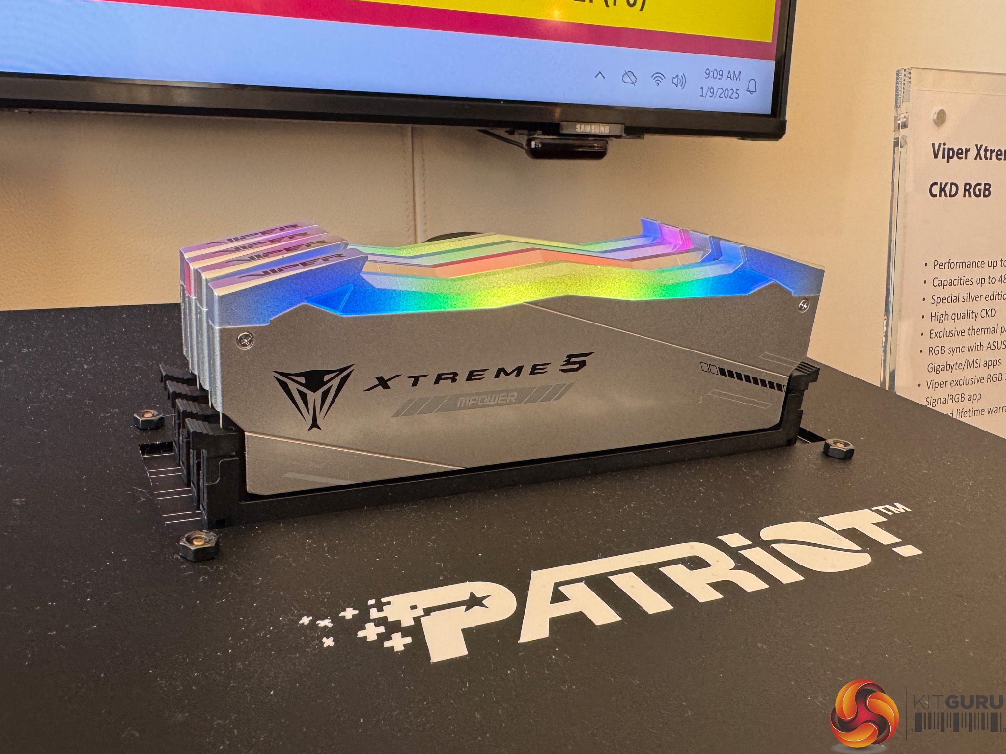 The star of the show is Patriot's Viper Xtreme 5 memory, offering speeds up to a staggering 9600MT/s and capacities up to 48GB. These units use high quality CKD, exclusive thermal pads for the PMIC and comes with a special edition silver heatshield.
