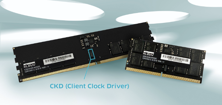 KLEVV's next-generation DDR5 memory lineup receives a substantial performance boost with the integration of advanced Client Clock Driver (CKD) technology. Incorporated via a small integrated circuit (IC) directly on the DIMM, CKD IC enhances the module's speed and efficiency for both desktop and laptop applications. By regenerating the memory chips' clock signal, it improves stability, supports higher operating frequencies, and minimises electrical interference and signal degradation.