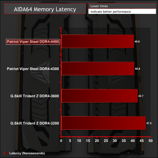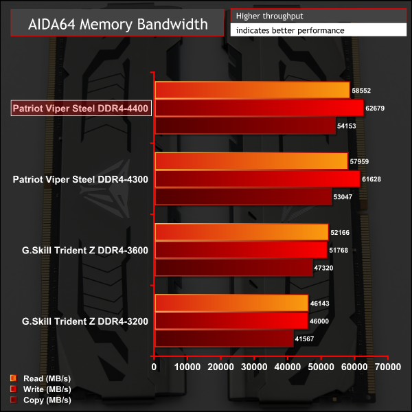 AIDA64 scales neatly, as a synthetic benchmark, but even here the jump in performance between 3,200MHz and 3,600MHz is almost the same as the jump between 3,600MHz to 4,400MHz, despite the frequency gap being half the size. As always, diminishing returns with high-speed memory is something be aware of.