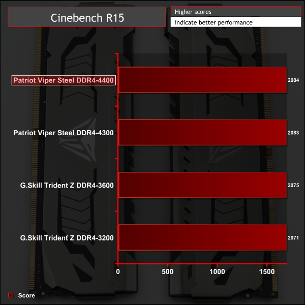 Both iterations of Cinebench have virtually no difference between them when comparing 3,200 and 4400MHz frequencies.
