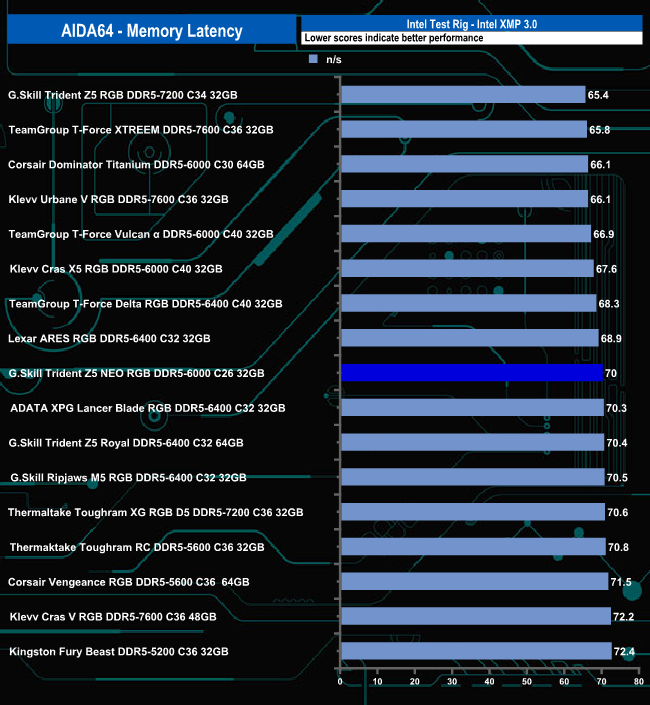 The CL26 timings don't appear to hold the memory back too much in the AIDA64 benchmark, placing it in a mid-table position.
