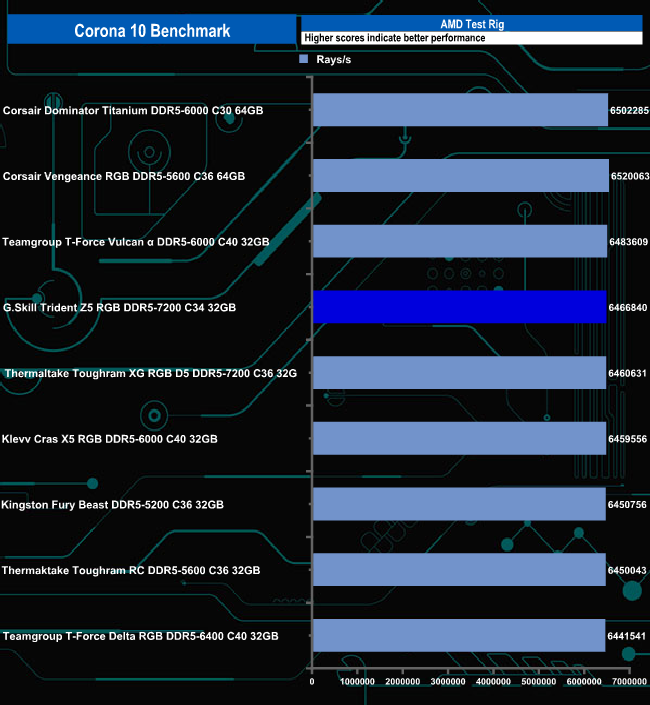 Although the G.Skill Trident Z5 RGB set sits at the bottom of the results chart, there's hardly anything to choose between any of the memory kits in any of the three benchmarks.