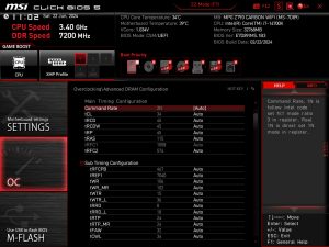 The memory runs at DDR5-4800 with timings of 40-40-40-77 natively with the single XMP 3.0 profile supporting DDR5-7200 with 34-45-45-115 timings at 1.4V.