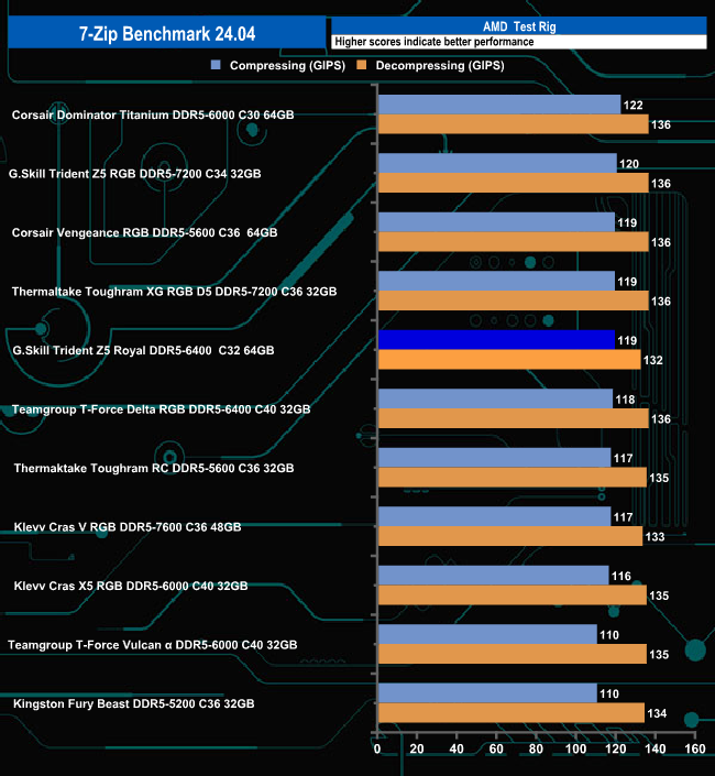 In the 7-Zip benchmark, the G.Skill Trident Z5 Royal sits fifth place in the table but there isn't an awful lot in it between top spot and ninth place on the table.