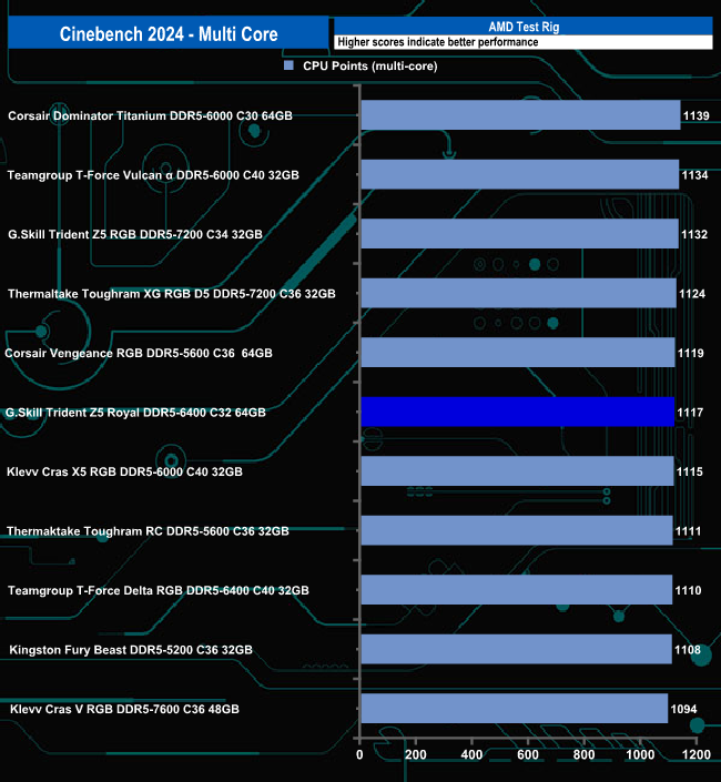 In the Cinebench 2024 multi-core test the G.Skill Trident Z5 Royal sits in a mid-table position.