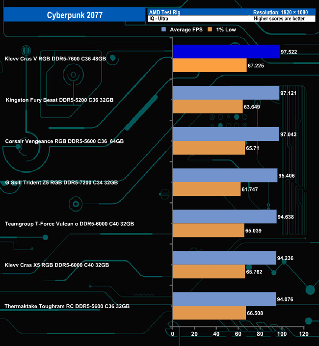 Although the CRAS V RGB sits top of the table in the Cyberpunk 2077 table using the Ultra settings and third in the Low setting table, there's hardly anything between any of the modules in this gaming benchmark particularly when using the Ultra settings.