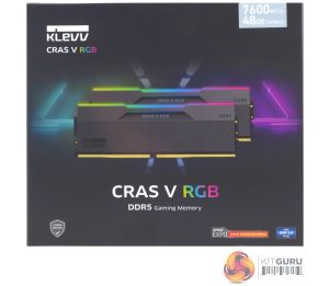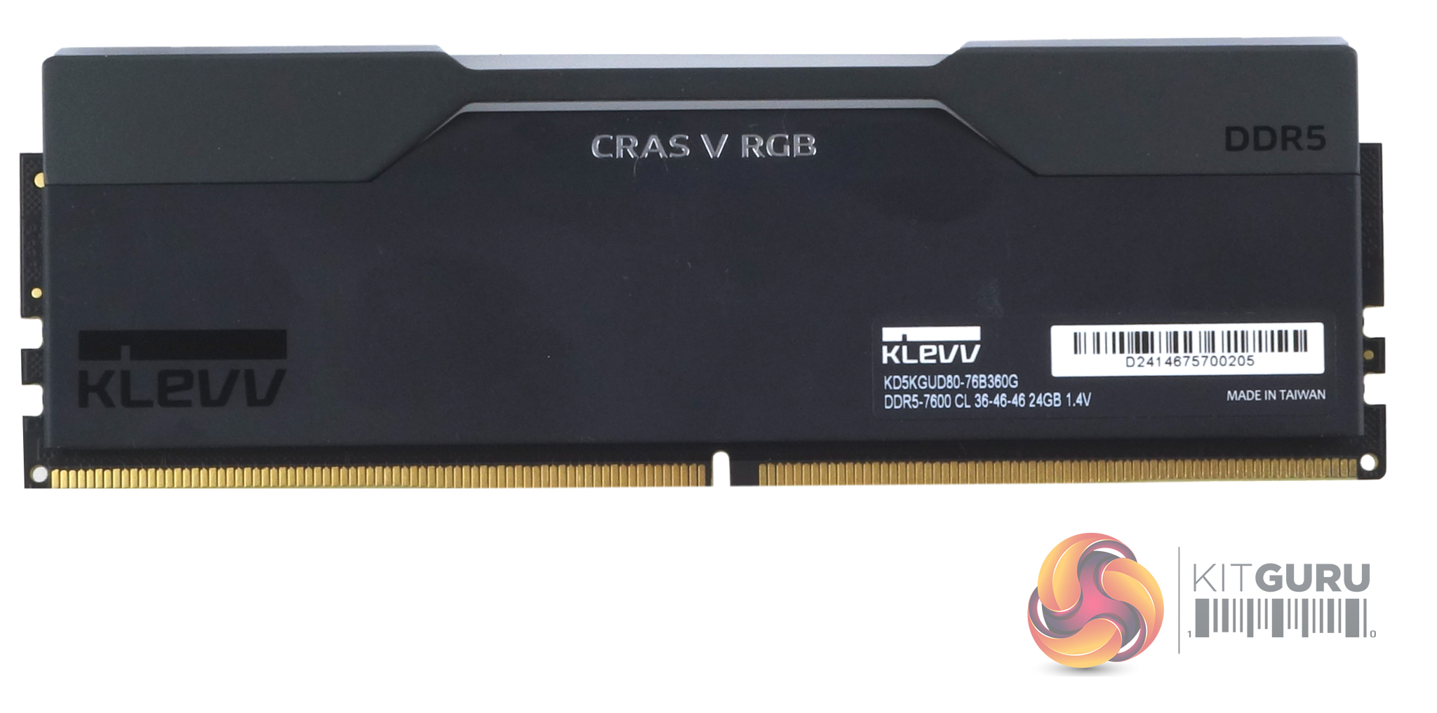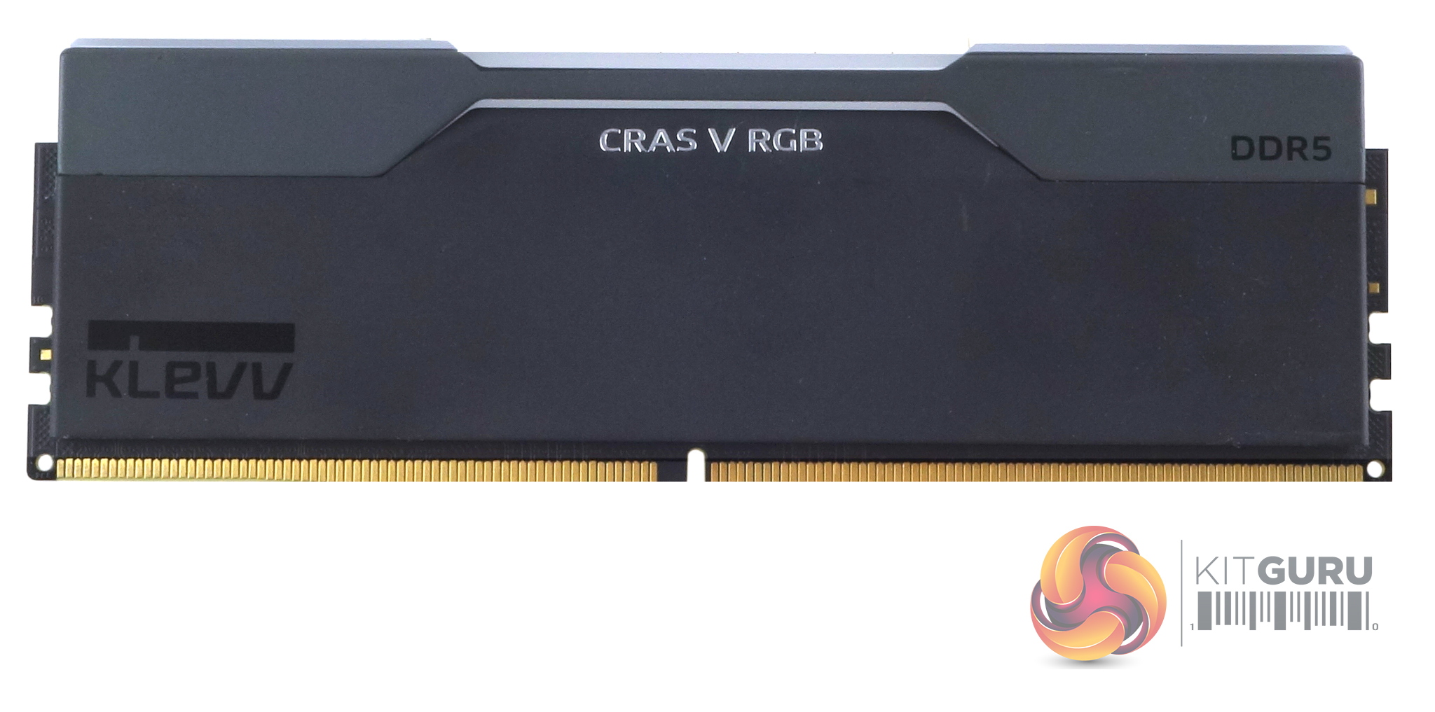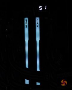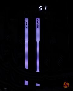 The heat spreaders on the modules are made from aluminium finished in (in the case of the review sample) black or as Klevv calls it Obsidian Black. A white version (Brilliant White) is also available. This black finish helps the product name (which looks like it has a chrome finish) stand out while the spreaders give the module a height of 44mm. The top of the module is home to the RGB defuser bar which covers the RGB zones which are controlled by the motherboard RGB system.