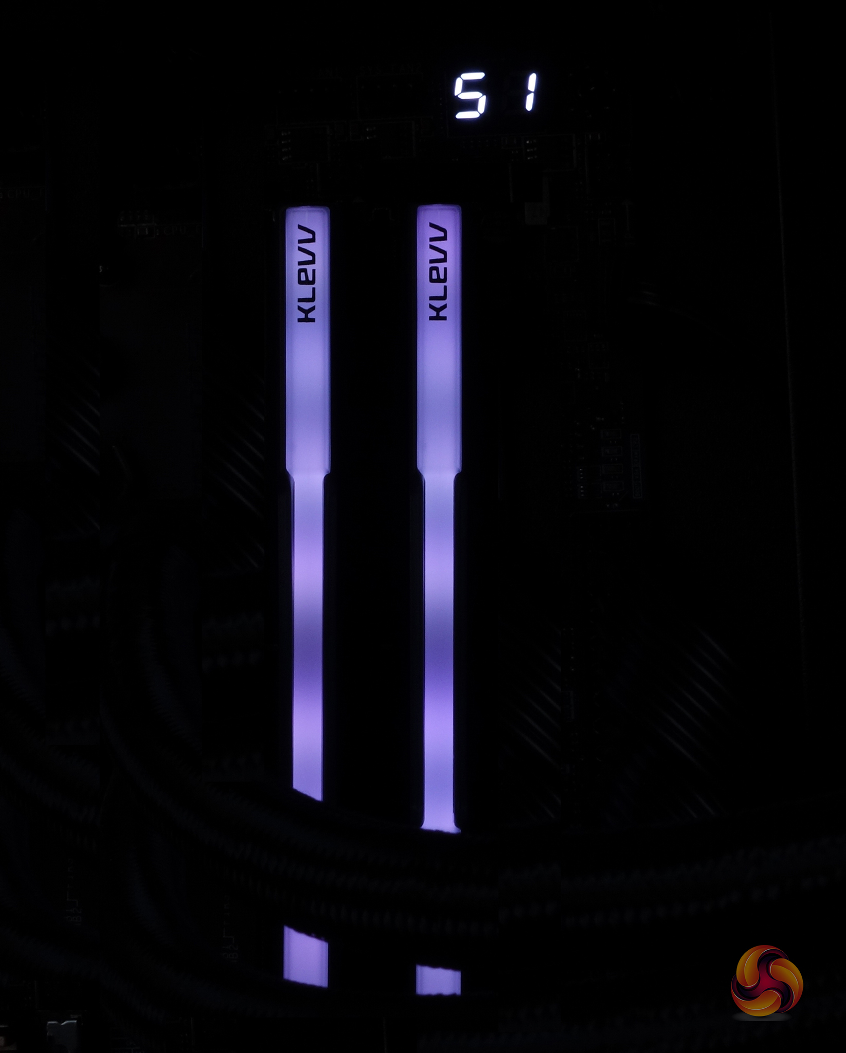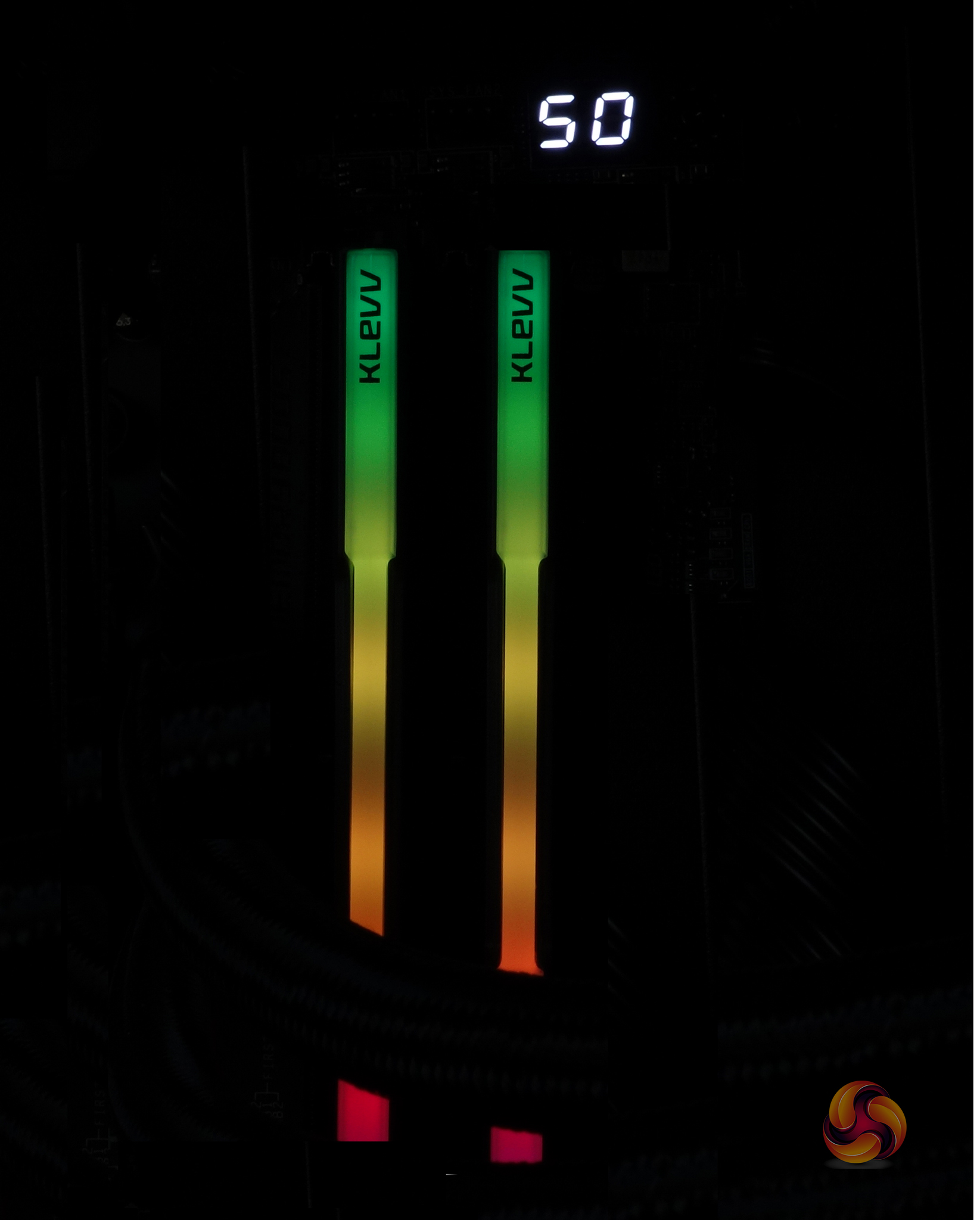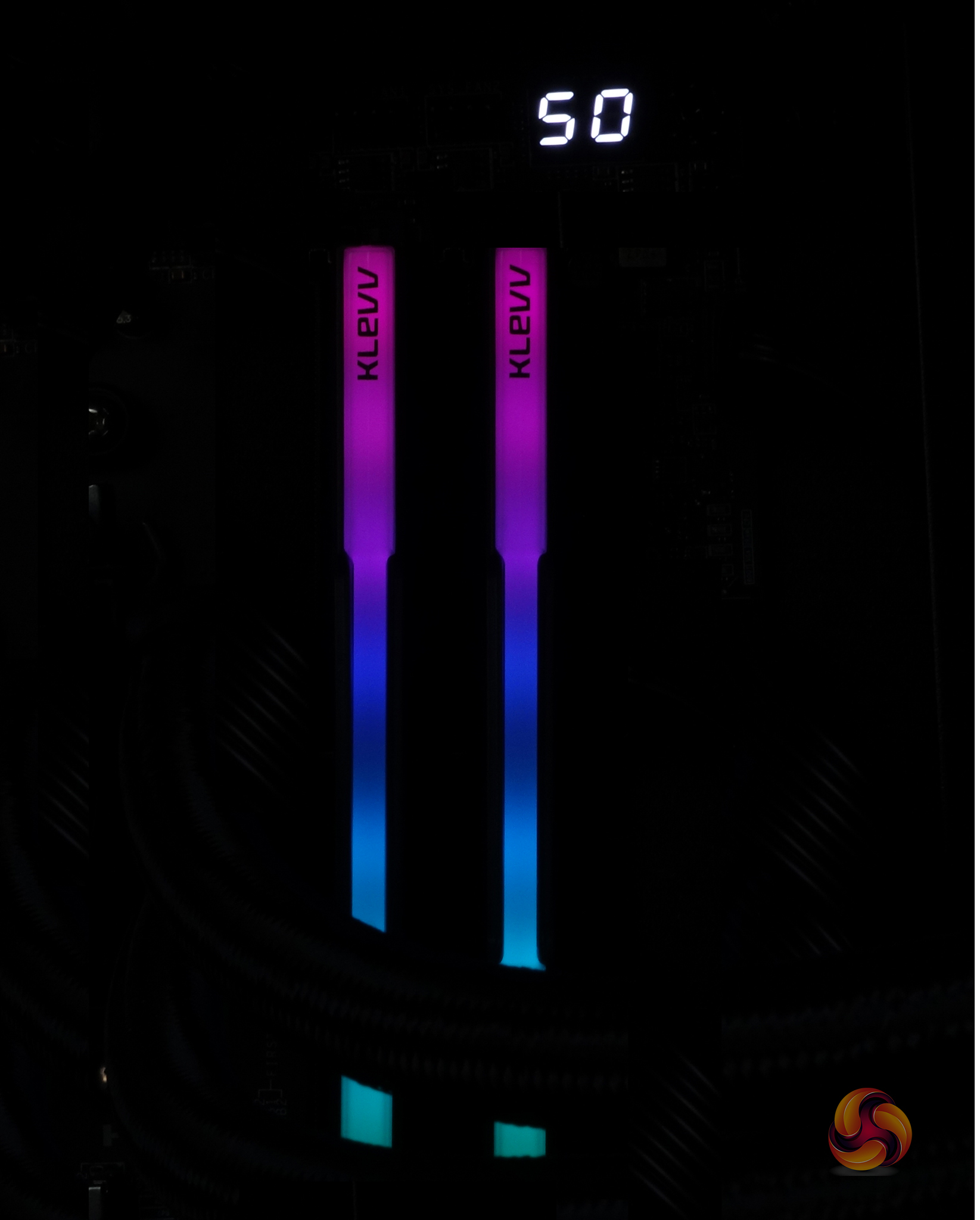The RGB works very well with vibrant, bright colours with smooth transitions. Klevv memory isn't supported by any in-house RGB lighting software (at the time of writing), but If you want the modules to sync up with the rest of your lighting scheme, Asus Aura Sync, Gigabyte RGB Fusion 2.0, MSI Mystic Light Sync, and ASRock Polychrome Sync are all supported.