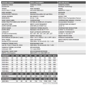 Built on a 10-layer PCB, the modules are a single-rank design, under the heatsink, there are eight 3GB SK Hynix chips (H5CGD8?EBDX021) along with a Richtek RTQ5132GQWF power management IC (PMIC).