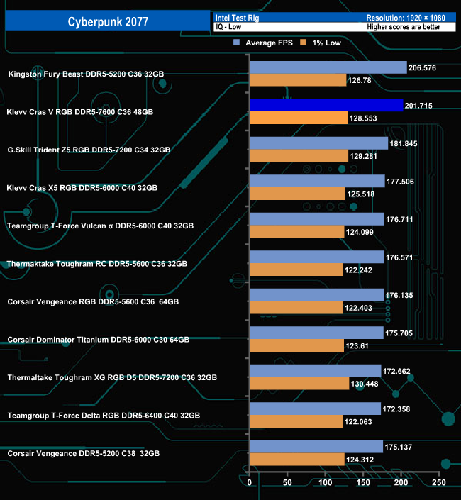 Regardless of the quality settings the memory handles the Cyberpunk game benchmark very well. Its the fastest we've seen to date with the Ultra settings enabled and somewhat oddly the second fastest with the low-quality settings turned on.