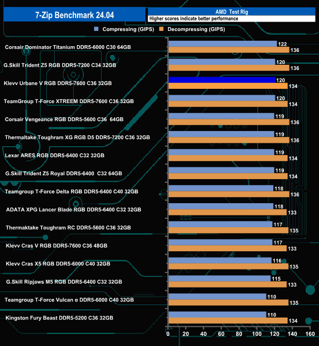 In the 7-Zip benchmark, the Urbane V RGB 7600 sits in the third spot in the table. Truth be told there isn't an awful lot in it between top spot and tenth place on the table for either of the tests.