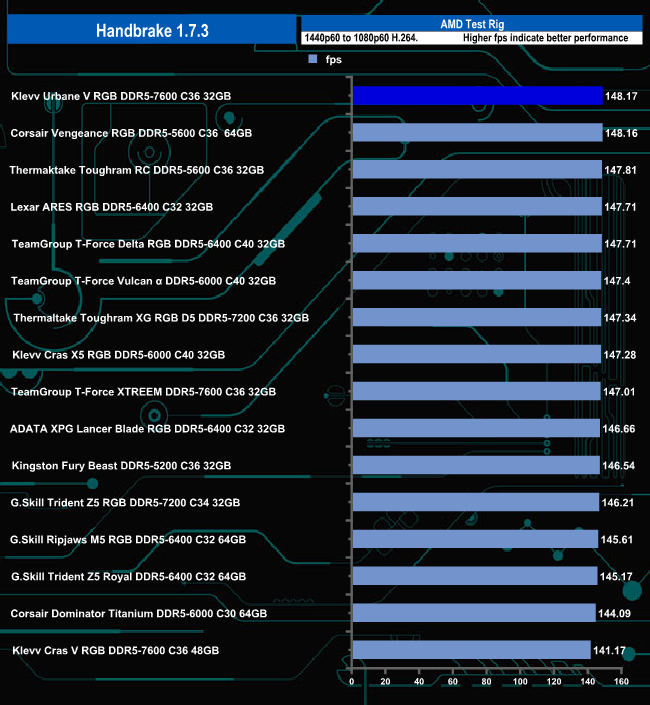 By the smallest margin, the Urbane V RGB sits in the top spot on the results chart with its fps score of 148.17.
