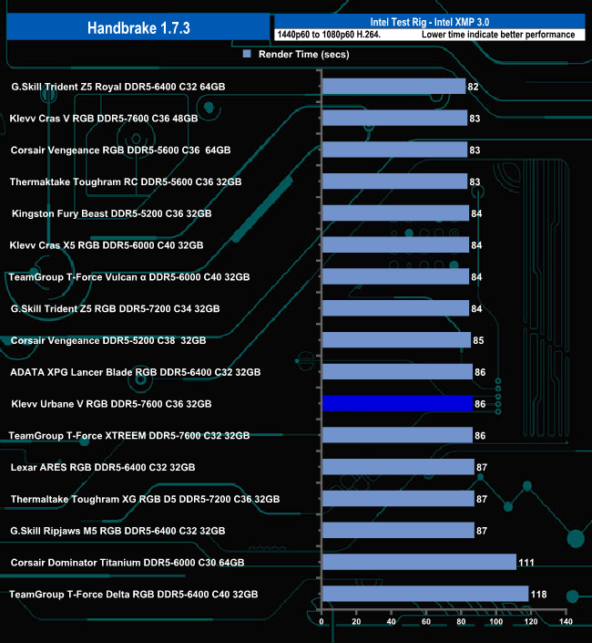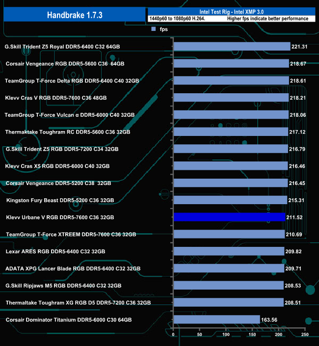 Although its score of 211.52fps puts the memory in the lower half of the table in reality it's only 9.79fps behind the Trident Z5 Royal DDR5-6400 kit from G.Skill sitting in the top spot.