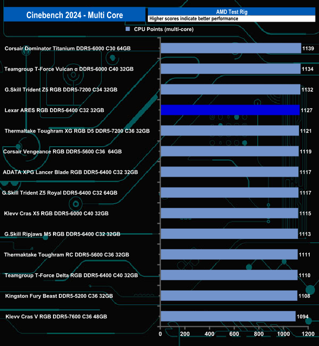 With a score of 1127 In the Cinebench 2024 multi-core test, Lexar's ARES RGB sits in fourth place in the results chart.