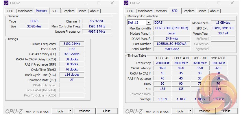 The memory runs at DDR5-5600 with timings of 46-45-45-90-135 1.40V natively with single Intel XMP 3.0 and AMD EXPO profiles supporting DDR5-6400 with 32-38-38-76-114 timings at 1.40V.