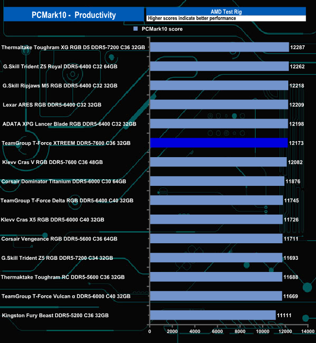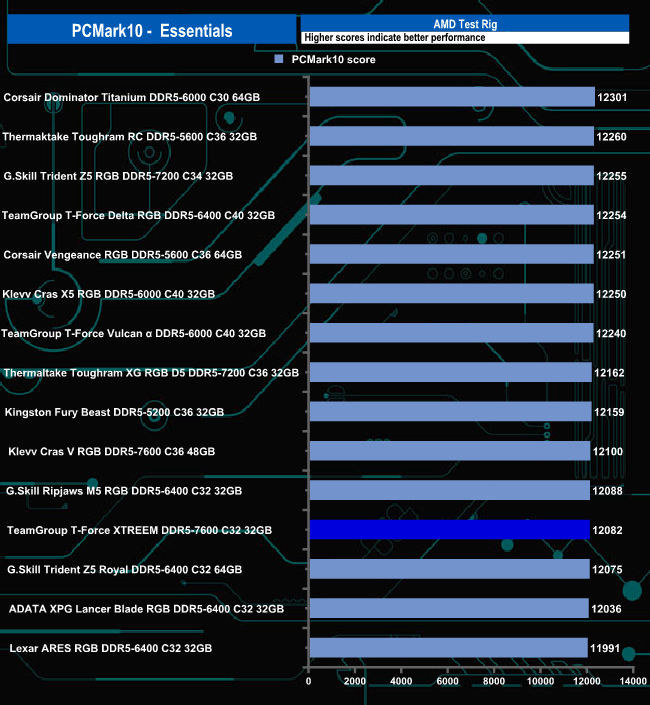 When tested with PCMark10, TeamGroup's XTREEM 7600 produced a mix of results. Its result from the Essentials test traces puts it towards the bottom of the results chart whereas the Digital Content Creation result sees it sitting in second place in that table. The Productivity result sees the drive sitting between those two positions in mid-table.