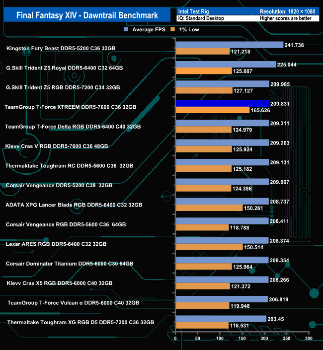 The T-Force XTREEM memory kit sits in the top ten in the results chart using Ultra settings with the best 1% Low score we've seen to date using these settings in this particular test.