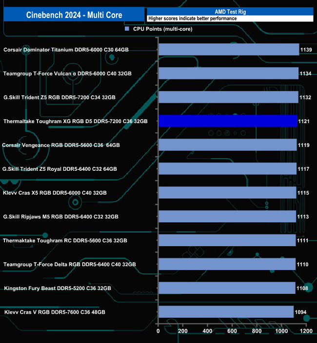 With a test result of 1121, the ToughRAM XG RGB D5 sits in fourth place in the Cinebench 2024 results chart.