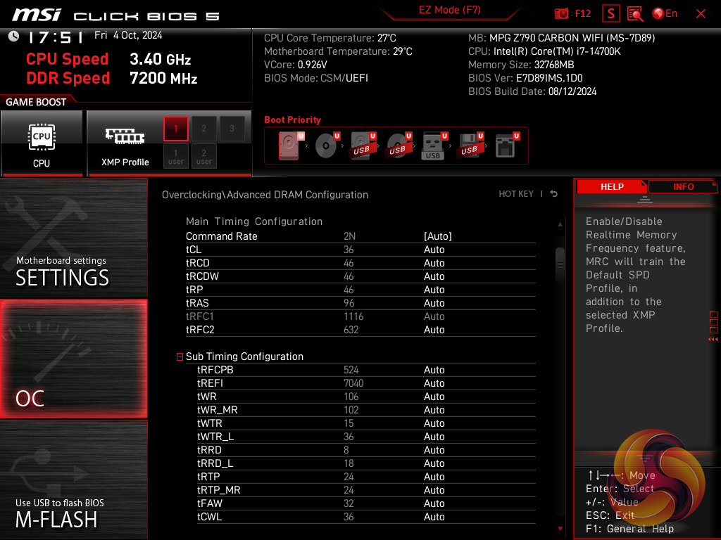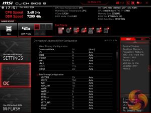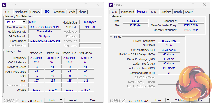 The memory runs at DDR5-5600 with timings of 46-45-45-90-135 1.10V natively with the single Intel XMP 3.0 profile supporting DDR5-7200 with 36-46-46-96-142 timings at 1.45V.