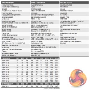 The memory uses eight 2GB SK Hynix A-Die ICs (H5CG48?GBDX014) and also on the PCB is a Renesas P8911-Y0Z001FNG power management IC (PMIC).
