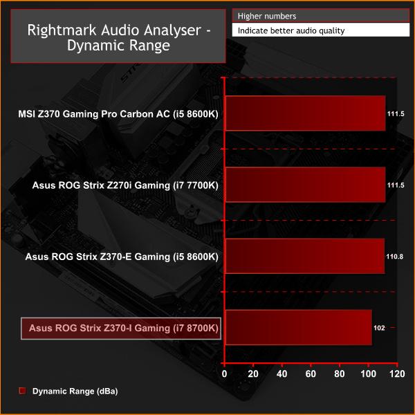 That’s solid, although it is a couple of minor steps behind last year’s Asus board and this year’s full-size MSI Z370 board. It’s not going to make a difference to most people, but audiophiles may want to bear this in mind.