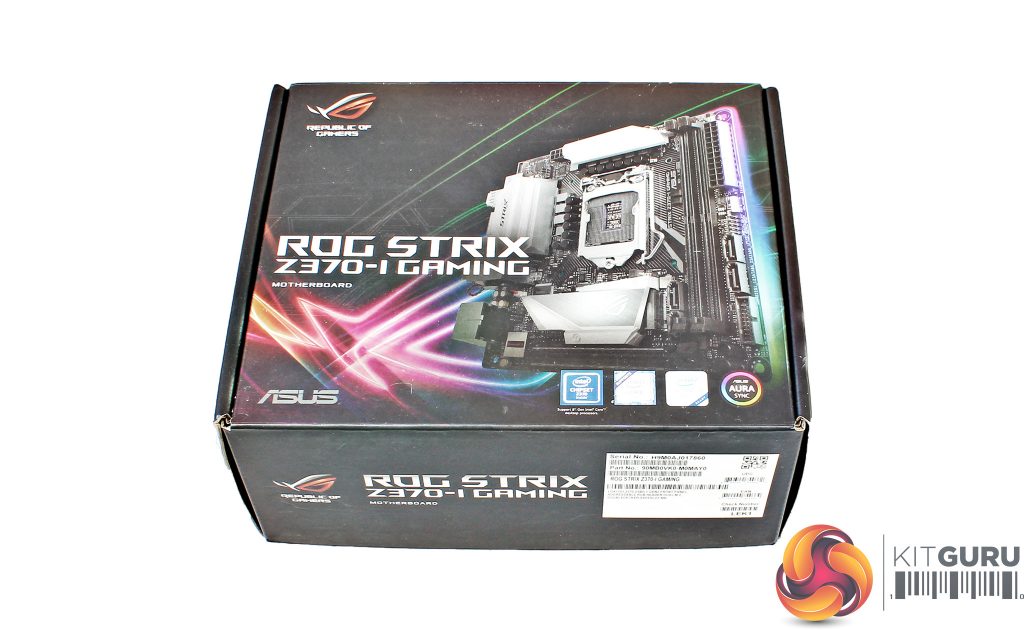 The small Asus ROG Strix Z370-I Gaming board arrives in a typically smart package. It’s all black cardboard on the inside, with the board in its own smart box and the accessories included in a second box below – a more considered approach than just tossing all of the accessories beneath the motherboard tray.