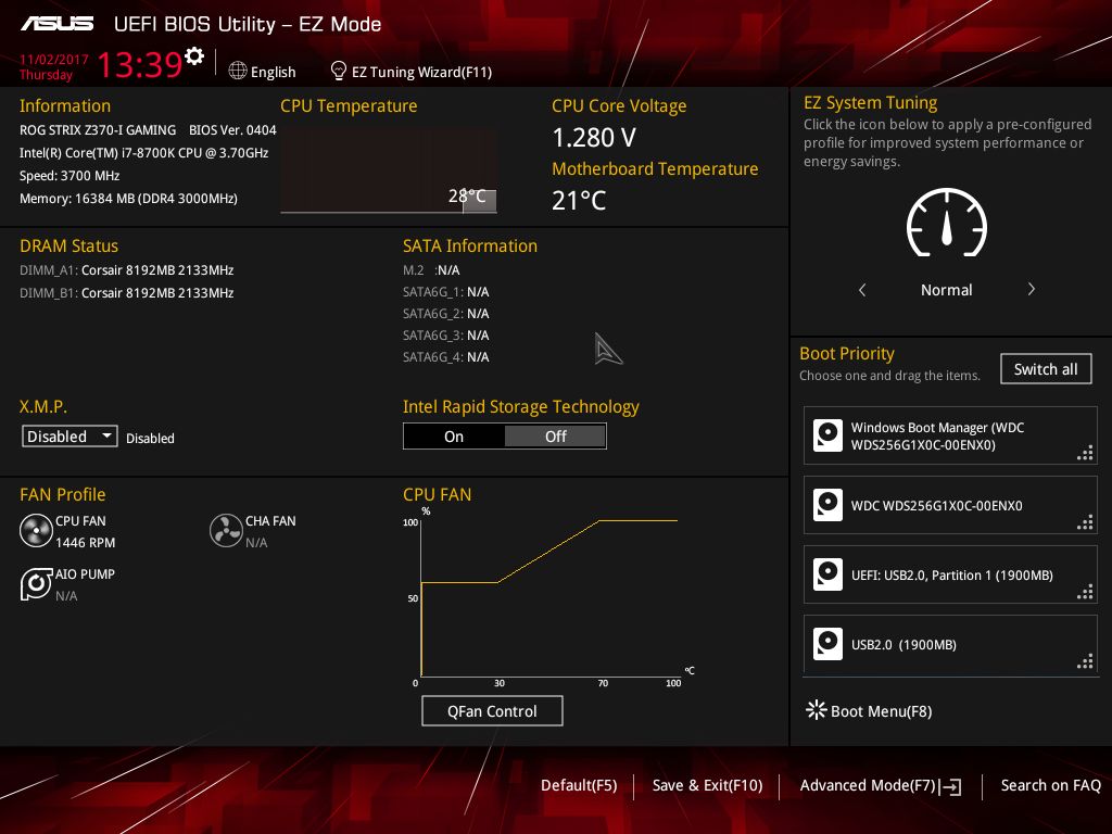 The Asus ROG Strix Z370-I Gaming board has the usual Asus UEFI. It’s certainly familiar, but that’s no bad thing – it’s one of the best UEFI software packages on the market today.