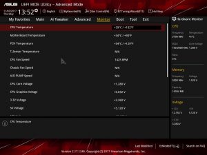 The UEFI boots into Asus’ familiar Easy Mode, which serves up key settings and readings in an easily-digestible format. You’ll find the CPU and board temperatures, boot priority, memory and storage information, fan speeds and a boot menu, alongside Normal, Fast and Extreme tuning options.