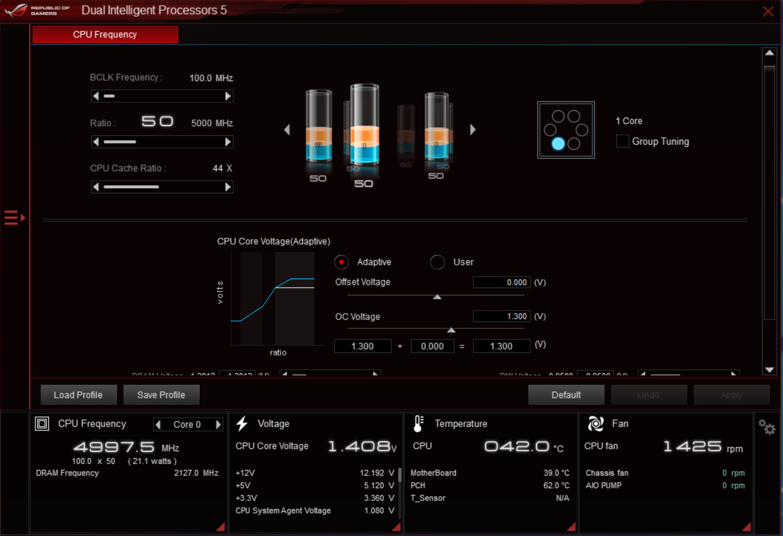 The familiar Aura lighting tool can be used to program the motherboard’s RGB LEDs to run in static colours or patterns, and they can also react to CPU temperature or workload. Compatible light-strips can also be added to this app and managed from within the software.