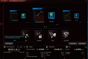 The Asus ROG Strix Z370-I Gaming comes with the usual selection of utilities. The key bit of software is AI Suite 3, which has a main screen full of component, voltage, temperature and fan speed information alongside one-click optimisation options.