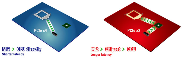 But there is a problem. On the Intel Z97 platform PCI Express 3.0 is only supported by the microprocessor itself. The CPU has 16 PCI Express 3.0 lanes that can be used to connect a graphics card in PCIe 3.0 x16 mode or reconfigured as 8+8 lanes (to support a dual-GPU configuration) or 8+4+4 lanes (to support a multi-GPU or multi-PCIe devices configuration). As a result, once an SSD in plugged into the Ultra M.2 slot, the bandwidth between central processing unit and graphics processing unit is cut-down by half. Therefore, while the end-user gets additional SSD performance, he/she may lose some GPU performance because of insufficient bandwidth between it and the CPU.