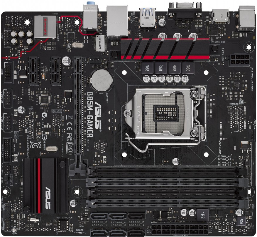 The Asus B85M-Gamer is powered by the Intel B85 chipset and is designed for Intel’s current-generation Core or Pentium “Haswell” processors in LGA1150 form-factor. The mATX mainboard features the company’s proprietary four-phase Digi+ voltage regulator module, four DDR3 DIMM slots, PCI Express x16 slot for graphics cards, PCI Express x1 slot for add-in boards, six Serial ATA ports (four SATA-6Gb/s, two SATA-3Gb/s), Gigabit Ethernet, 8-channel audio, USB 2.0, USB 3.0 ports and so on.