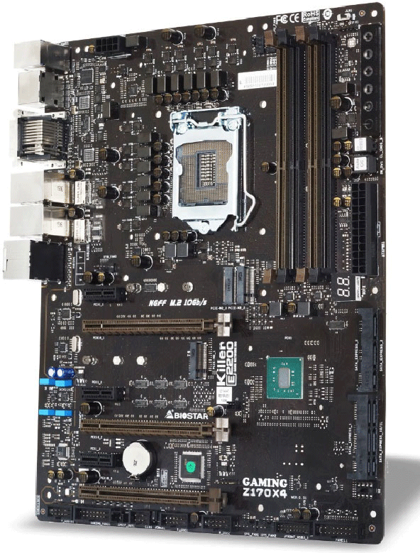 Biostar’s Gaming Z170X4 mainboard for LGA1151 processors is equipped with 12-phase voltage regulation module, four 288-pin DDR4 DIMM slots, three PCI Express 3.0 x16 slots, three PCIe 3.0 x1 slots, two 10Gb/s M.2 ports for solid state drives, Killer Ethernet E2200 network processor, Serial ATA and Serial ATA Express ports, integrated audio and so on. The platform will most likely support all Biostar’s latest proprietary technologies.